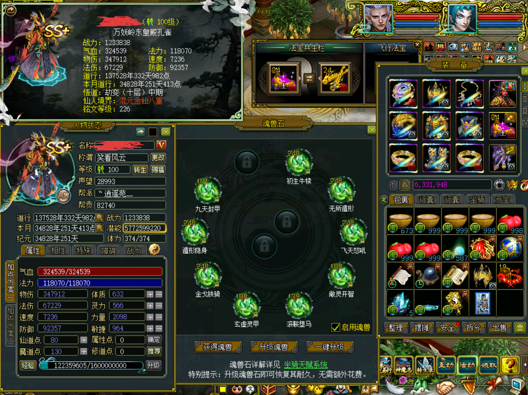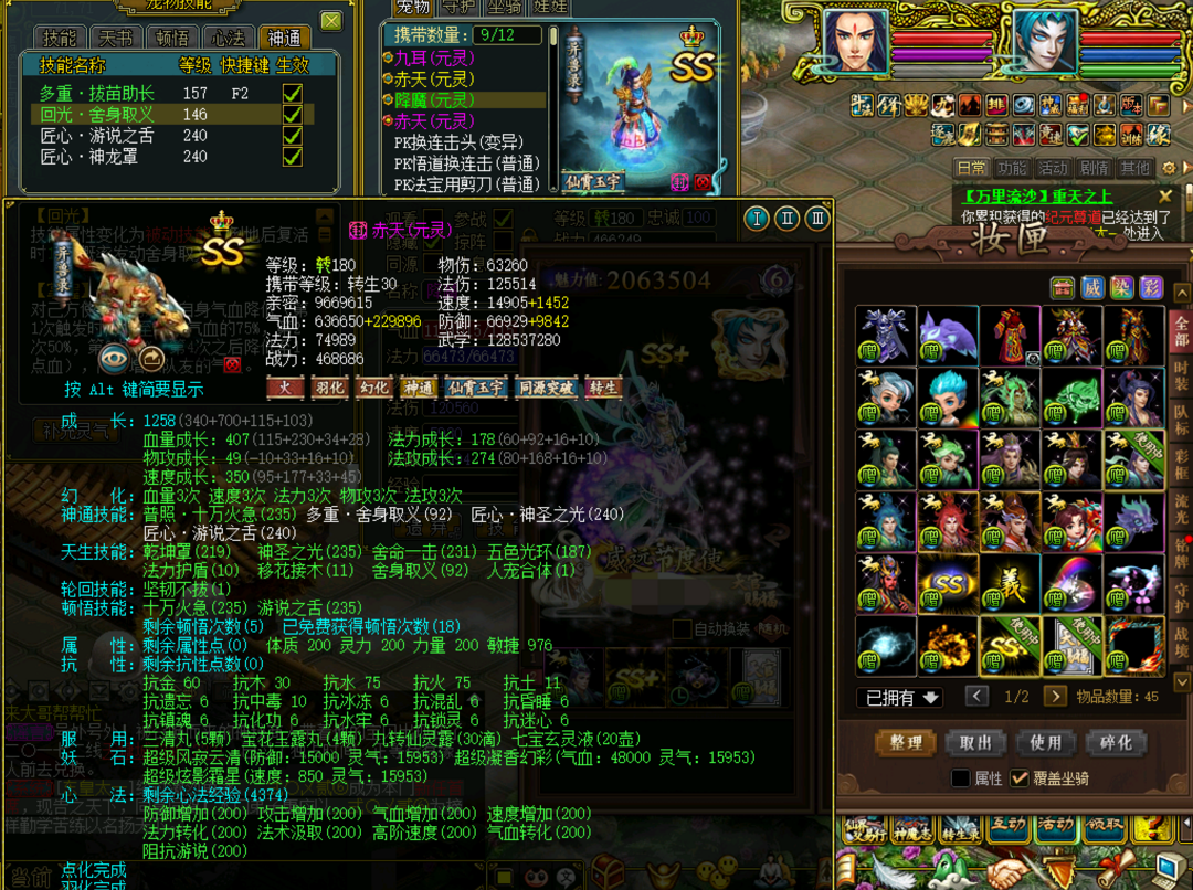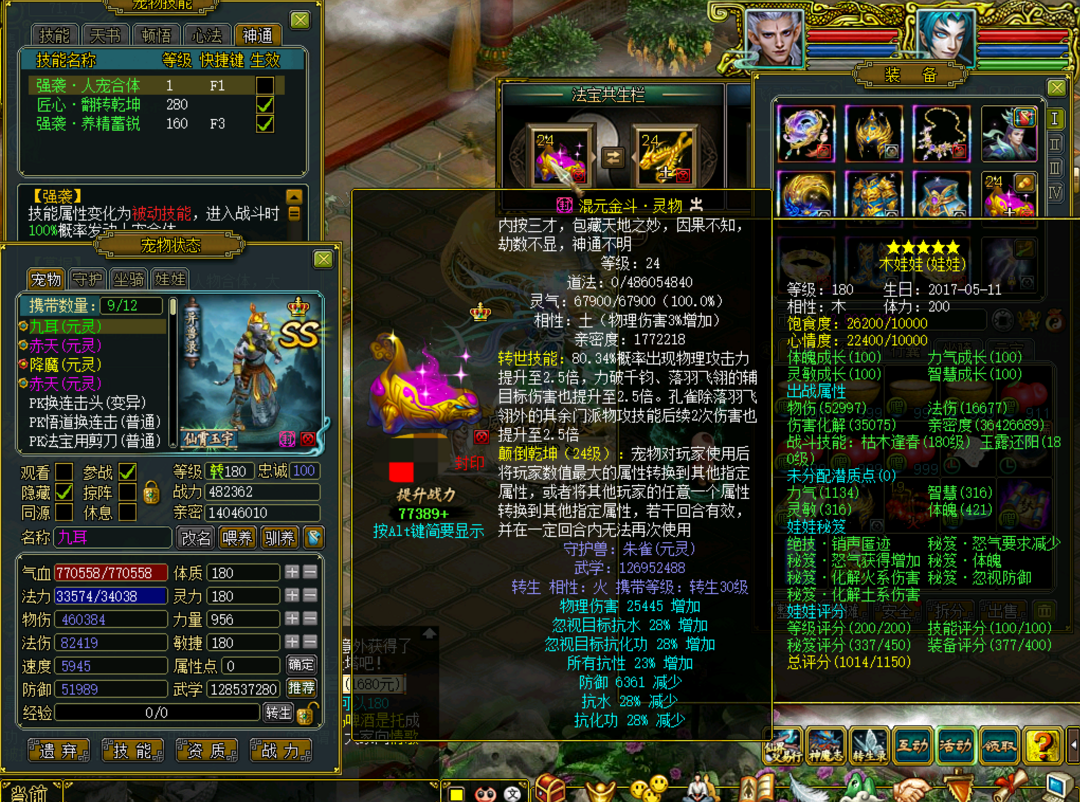 装备描述:两个满级高亲密法宝,做任务用强力克和豆子,PK用连击和剪刀,悟道第一属性是连击率,第二属性是强力克,自己可以点开悟道属性的1和2自由切换,根据自己的需求来,一个强力克头一个连击头,根据自己需求配备,3700万亲密的木娃娃,配满坐骑石头,可以打掉对方娃娃、坐骑、隐身,别人打不打掉己方的娃娃、坐骑,以及隐身,时装多多,随意穿搭,每个月都刷高本月道,排位和任何活动都不受影响,第一防御的降魔,绝对的肉盾辅助宠物!!!切记不要下载上号器,直接找客服上号。