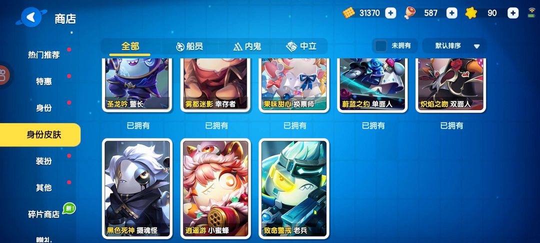 木偶人、柯南,灰原哀,毛利安身份、8身份皮、贵族五、故意撤单拉黑