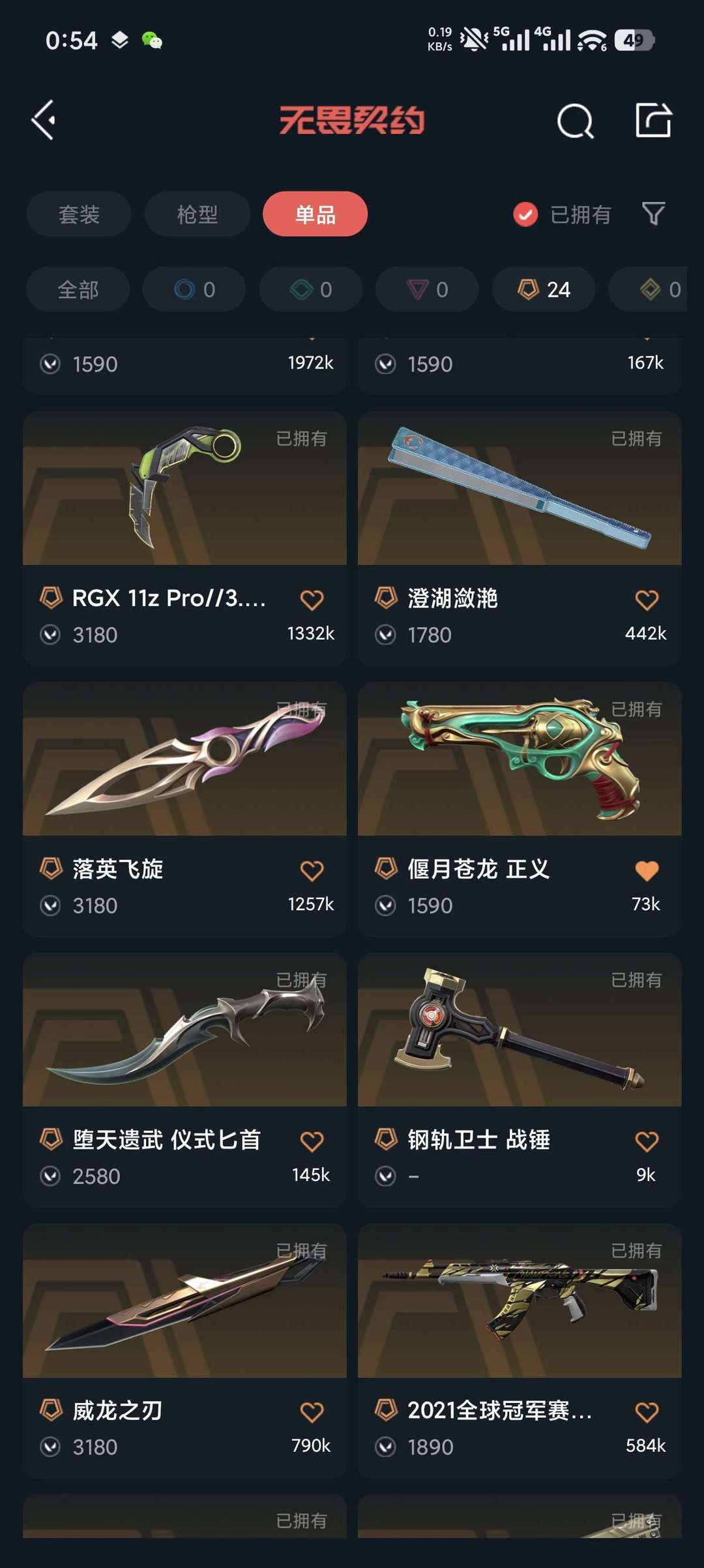 禁打排位 21狂徒 龙年套 堕天套 24冠军套 详情看图 刀多 禁打排位