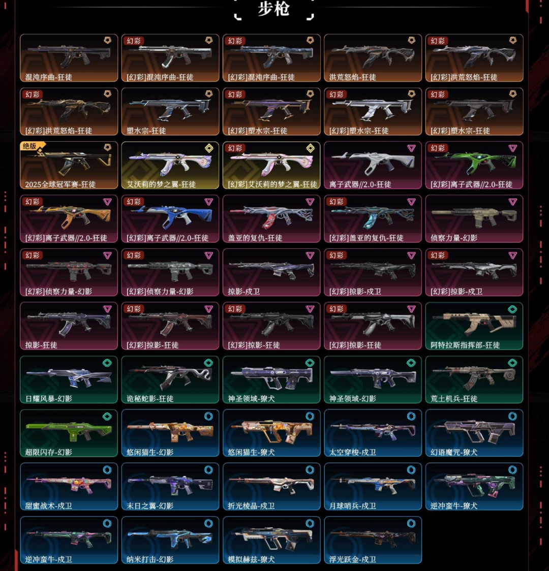 VCT+紫金+黑波+雷切+威龙+夜刃+剥皮⭐AK25冠军猫咪混沌流浓离子盖亚塑水掠夺⭐奇点边陲正义