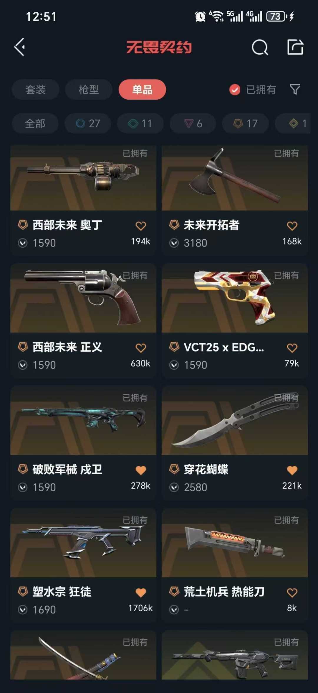 可排位❤️10万库穿花蝴蝶vct爪西部套✨掠夺套✨塑水宗紫金威龙ak显卡爪太刀781洪荒幻影堕天大狙
