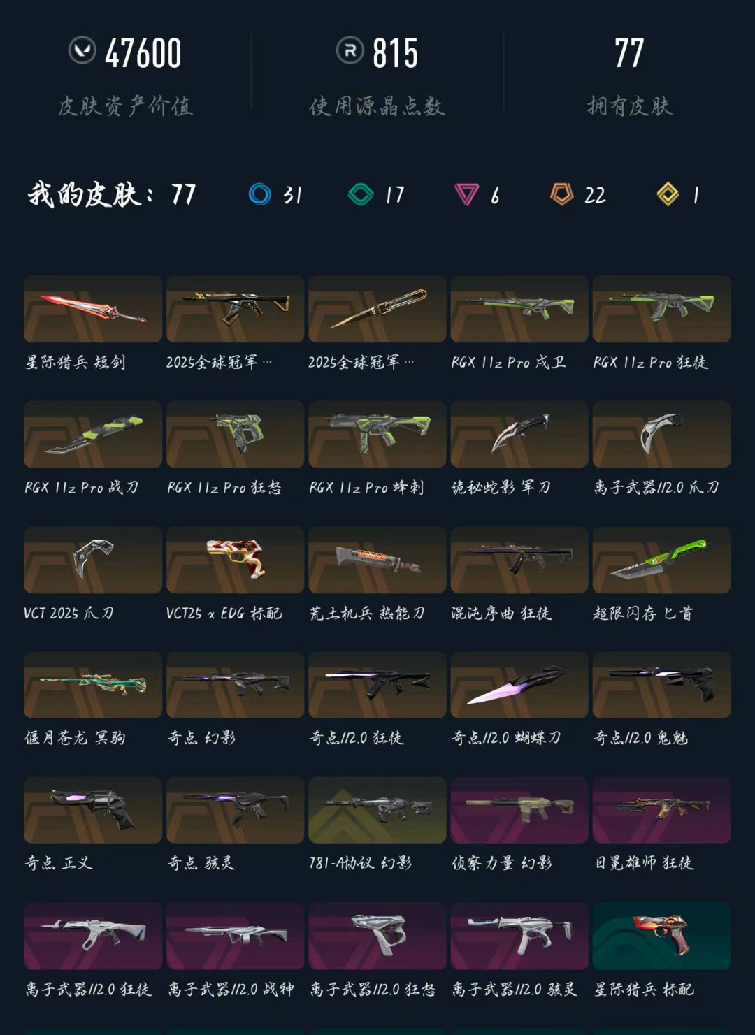 装备描述:随身武器:(奇点//2.0 鬼魅 炫彩3);(奇点//2.0 鬼魅 炫彩1);(离子武器//2.0 狂怒 炫彩1);(离子武器//2.0 狂怒 炫彩2);(离子武器//2.0 狂怒 炫彩3);(RGX 11z Pro 狂怒 炫彩2);(RGX 11z Pro 狂怒 炫彩3);(RGX 11z Pro 狂怒 炫彩1) 冲锋枪:(离子武器//2.0 骇灵 炫彩1);(离子武器//2.0 骇灵 炫彩3);(离子武器//2.0 骇灵 炫彩2);(RGX 11z Pro 蜂刺 炫彩2);(RGX 11z Pro 蜂刺 炫彩3);(RGX 11z Pro 蜂刺 炫彩1) 步枪:(侦察力量 幻影 炫彩2);(侦察力量 幻影 炫彩3);(781-A协议 幻影 炫彩2);(781-A协议 幻影 炫彩3);(日冕雄师 狂徒 炫彩2);(日冕雄师 狂徒 炫彩3);(混沌序曲 狂徒 炫彩1);(奇点//2.0 狂徒 炫彩1);(奇点//2.0 狂徒 炫彩3);(离子武器//2.0 狂徒 炫彩1);(离子武器//2.0 狂徒 炫彩3);(RGX 11z Pro 狂徒 炫彩1);