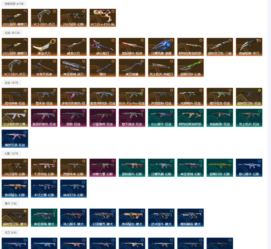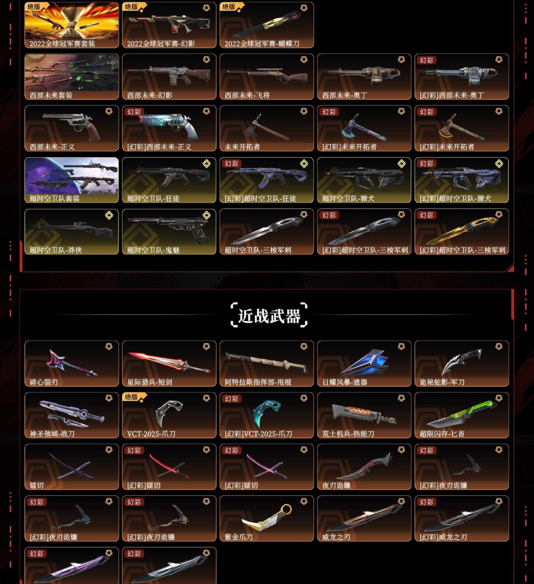 大库存【超时空卫队套装】22冠军套边陲套⭐17把刀19把热门主战⭐紫金威龙VCT爪镭切⭐EDG标配⭐
