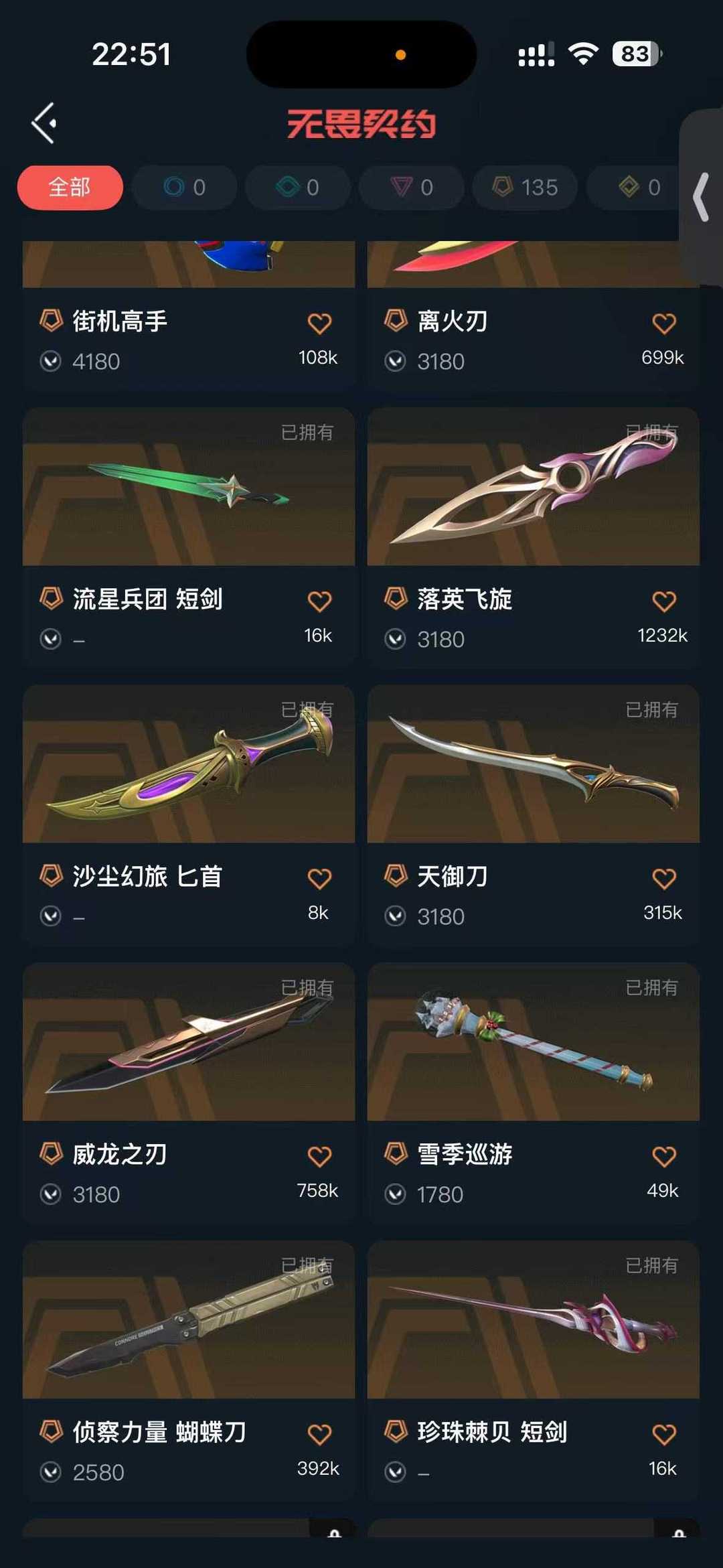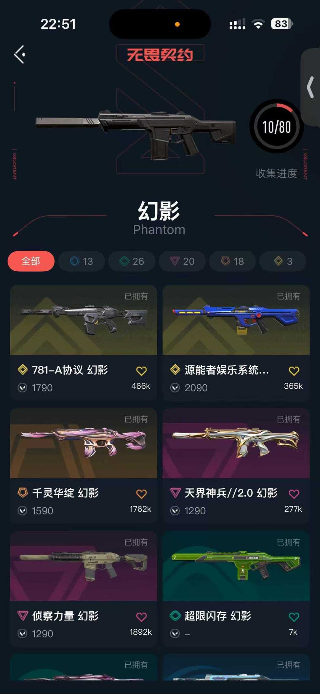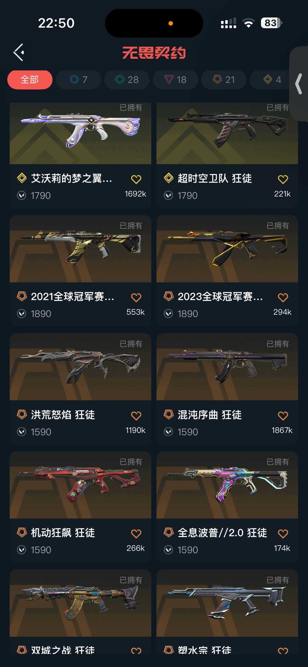 21冠军套➕离火刃➕23冠军➕般若套➕源能套➕莲花套➕天界套➕威龙套➕塑水套➕侦查套大库存成品号