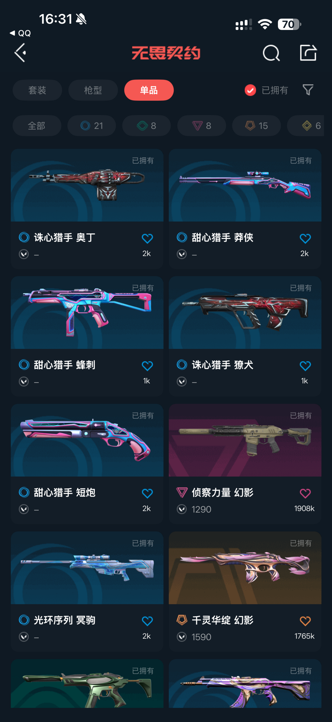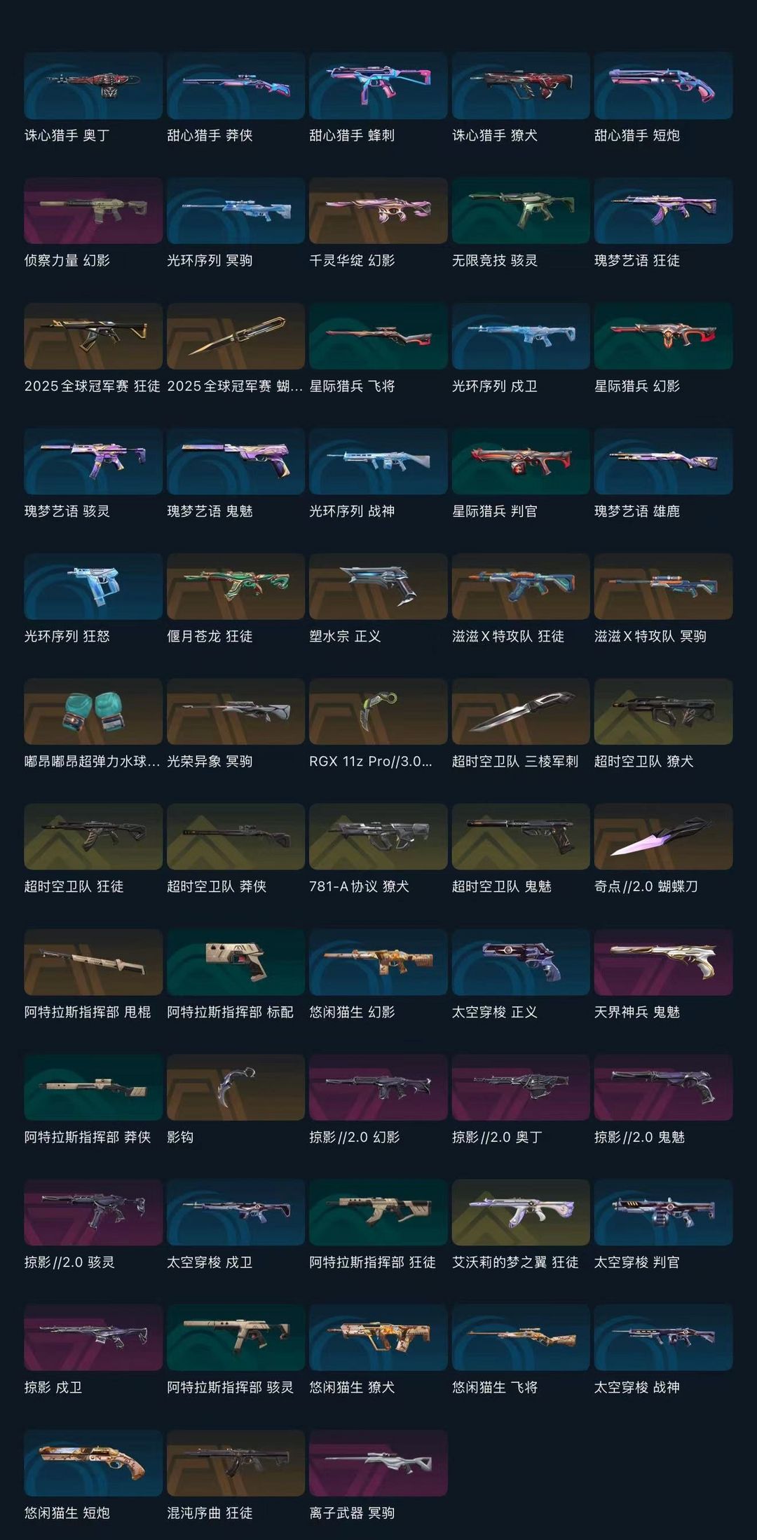 装备描述:随身武器:(掠影//2.0 鬼魅 炫彩1);(掠影//2.0 鬼魅 炫彩2);(掠影//2.0 鬼魅 炫彩3);(超时空卫队 鬼魅 炫彩1);(超时空卫队 鬼魅 炫彩2);(超时空卫队 鬼魅 炫彩3) 冲锋枪:(掠影//2.0 骇灵 炫彩1);(掠影//2.0 骇灵 炫彩2);(掠影//2.0 骇灵 炫彩3) 步枪:(滋滋X特攻队 狂徒 炫彩1);(滋滋X特攻队 狂徒 炫彩2);(滋滋X特攻队 狂徒 炫彩3);(混沌序曲 狂徒 炫彩1);(掠影//2.0 幻影 炫彩1);(掠影//2.0 幻影 炫彩2);(掠影//2.0 幻影 炫彩3);(781-A协议 獠犬 炫彩1);(781-A协议 獠犬 炫彩2);(781-A协议 獠犬 炫彩3);(超时空卫队 狂徒 炫彩1);(超时空卫队 狂徒 炫彩2);(超时空卫队 狂徒 炫彩3);(超时空卫队 獠犬 炫彩1);(超时空卫队 獠犬 炫彩3);(超时空卫队 獠犬 炫彩2);(侦察力量 幻影 炫彩2);(侦察力量 幻影 炫彩3);(艾沃莉的梦之翼 狂徒 炫彩3);(艾沃莉的梦之翼 狂徒 炫彩1);(千灵华绽 幻影 炫彩1);(千灵华绽 幻影 炫彩