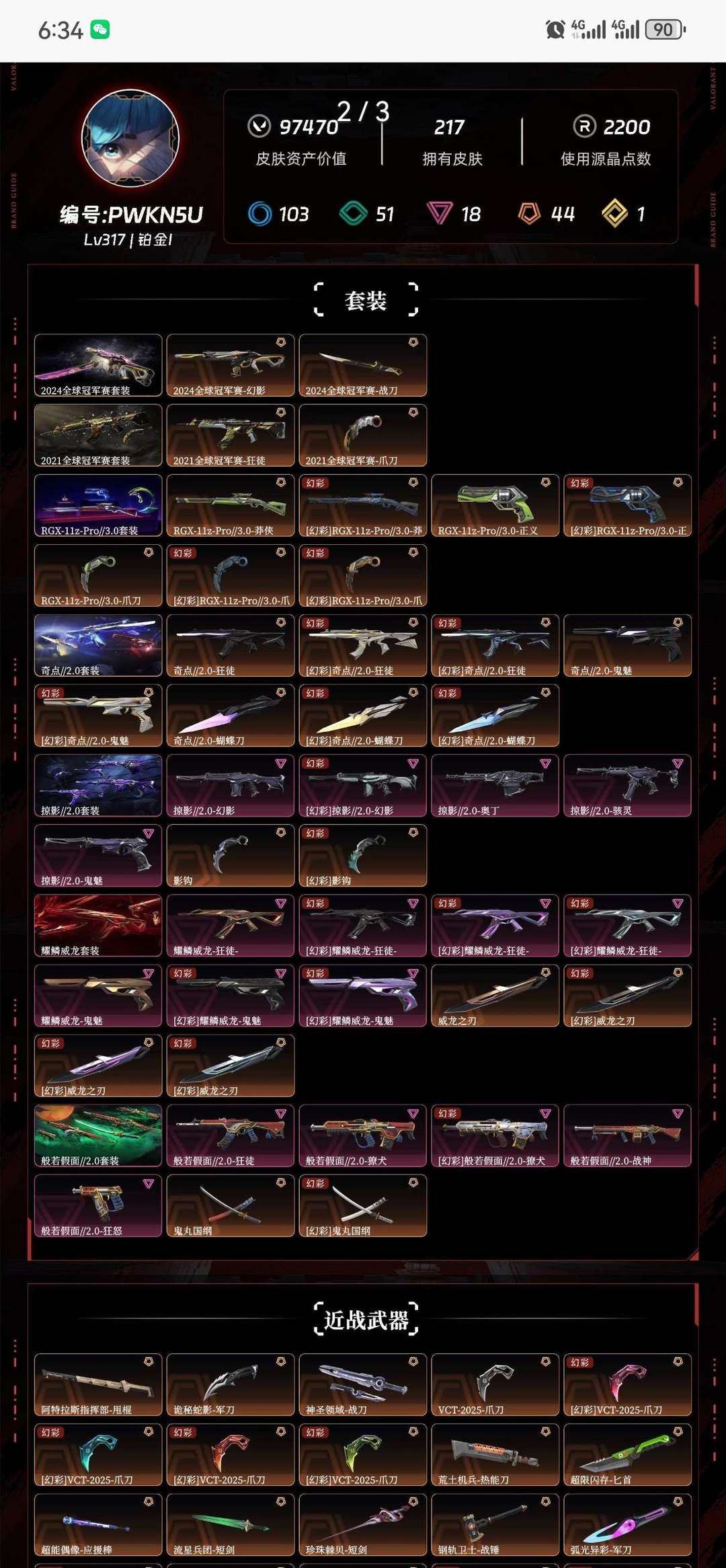 VCT爪刀21冠24冠颗秒ak显卡3.0奇点2.0威龙恶鬼2.0魄月玄兔摩托