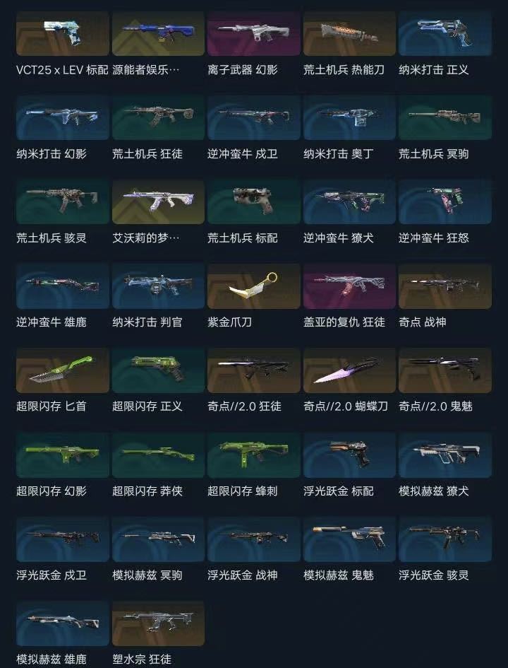 可排位 绝版22冠军25vct爪刀 整奇点2.0套 神中神盖亚侦查 苍龙大狙 奇点正义 多款近战武器