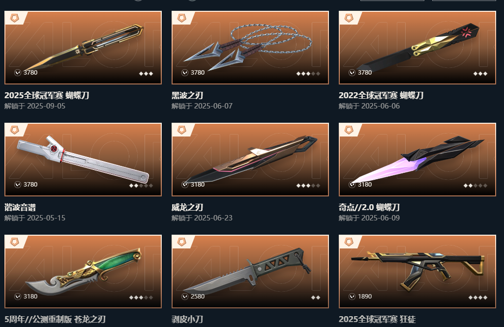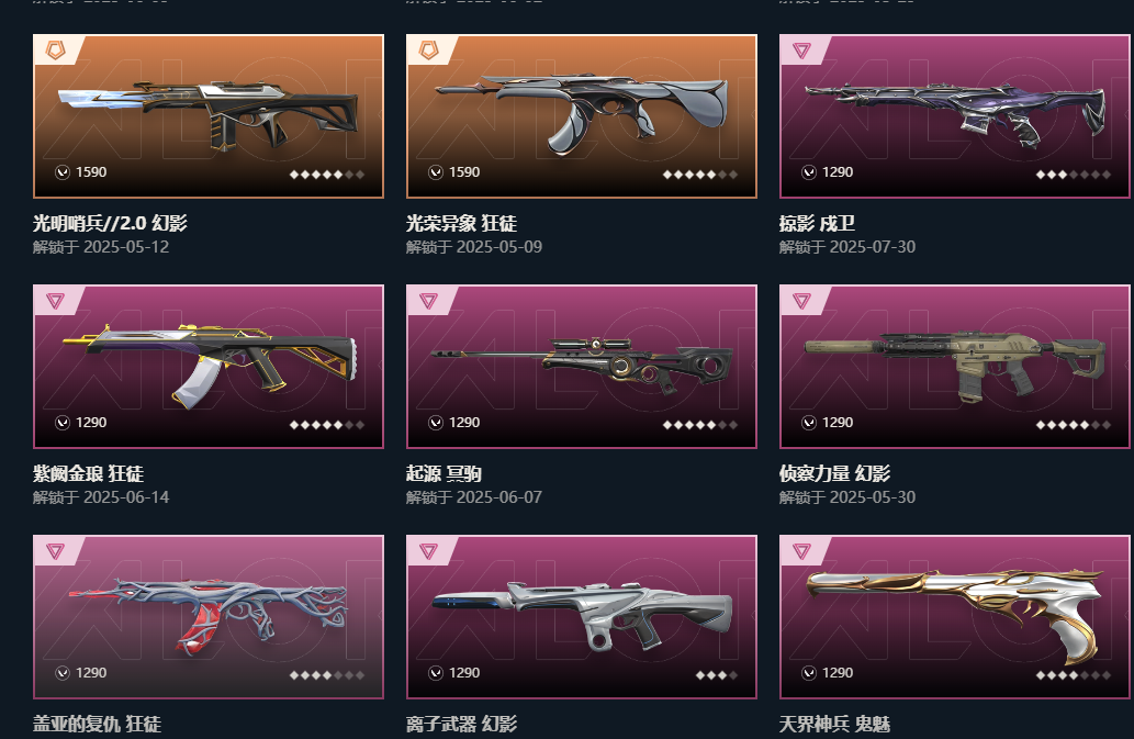 装备描述:霰弹枪:(千灵华绽 判官 炫彩1);(千灵华绽 判官 炫彩2);(千灵华绽 判官 炫彩3) 步枪:(盖亚的复仇 狂徒 炫彩3);(盖亚的复仇 狂徒 炫彩1);(盖亚的复仇 狂徒 炫彩2);(侦察力量 幻影 炫彩1);(侦察力量 幻影 炫彩3);(781-A协议 獠犬 炫彩2);(781-A协议 獠犬 炫彩3);(混沌序曲 狂徒 炫彩2);(混沌序曲 狂徒 炫彩3);(混沌序曲 狂徒 炫彩1);(光荣异象 狂徒 炫彩1);(光荣异象 狂徒 炫彩3);(超时空卫队 狂徒 炫彩1);(超时空卫队 狂徒 炫彩2);(超时空卫队 狂徒 炫彩3) 狙击步枪:(归零者 冥驹 炫彩2);(归零者 冥驹 炫彩1);(起源 冥驹 炫彩2);(起源 冥驹 炫彩1);(归零者//2.0 莽侠 炫彩1);(归零者//2.0 莽侠 炫彩3) 近战武器:(奇点//2.0 蝴蝶刀 炫彩3);(奇点//2.0 蝴蝶刀 炫彩2);(奇点//2.0 蝴蝶刀 炫彩1);(谐波音谱 炫彩1);(谐波音谱 炫彩3);(谐波音谱 炫彩2);