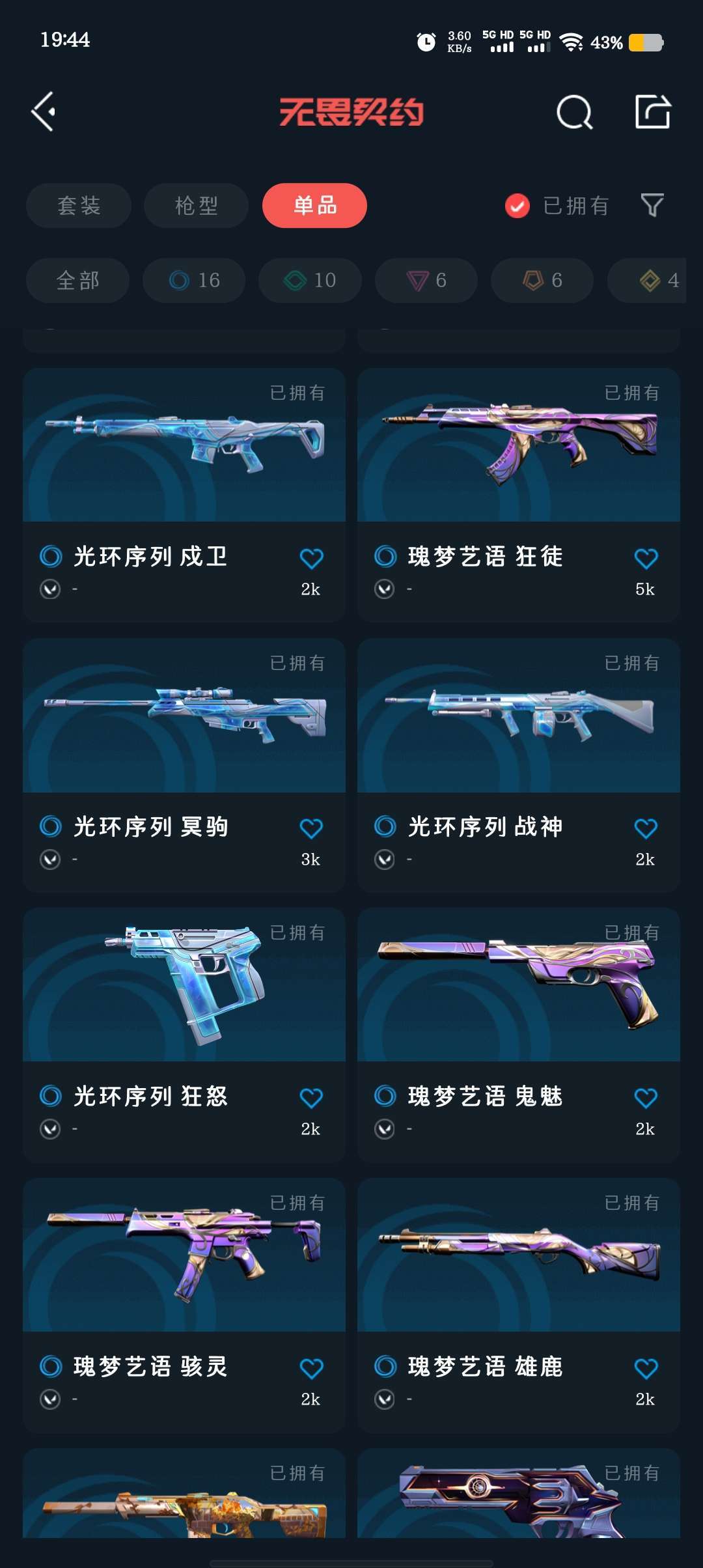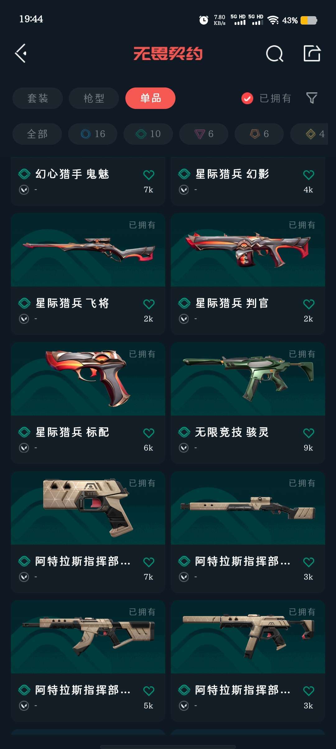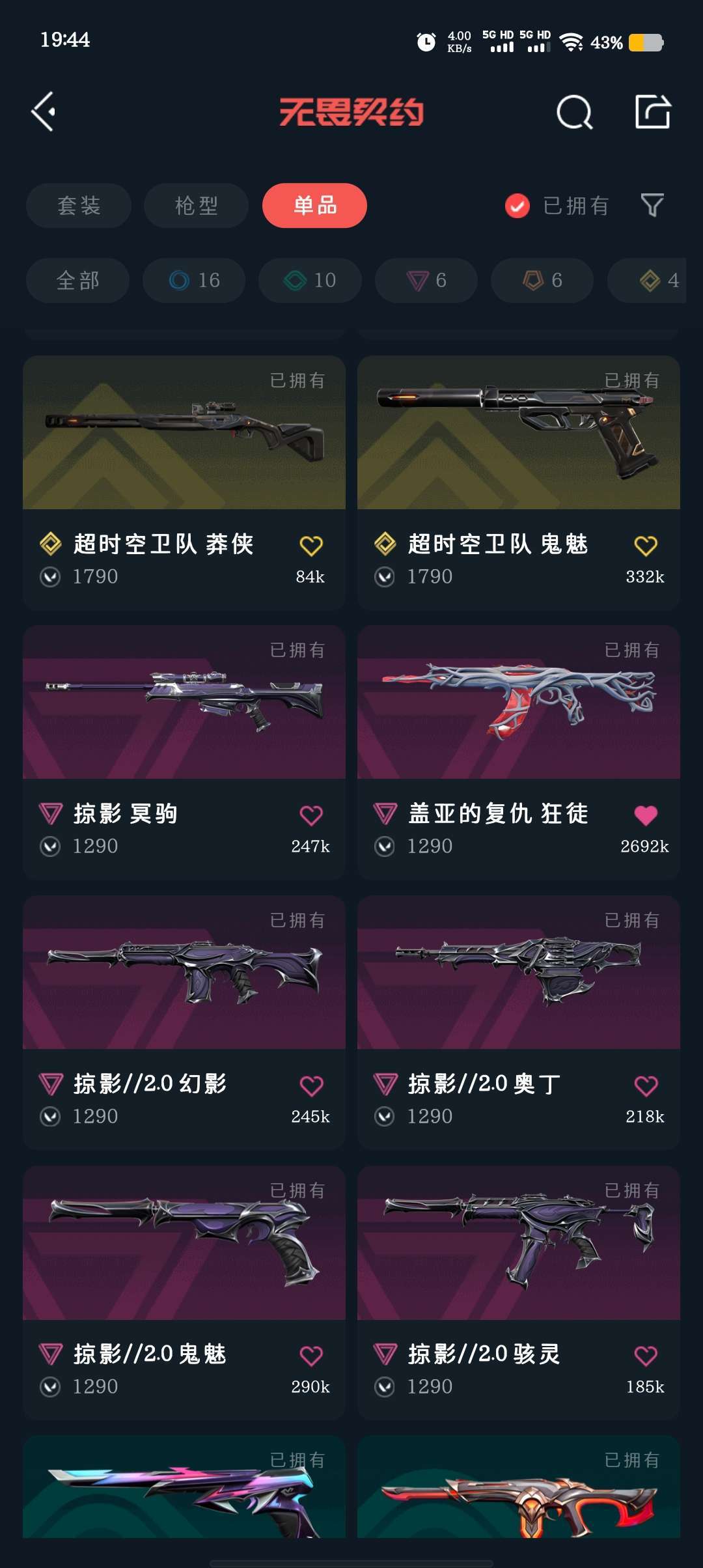 武器皮肤数量:43