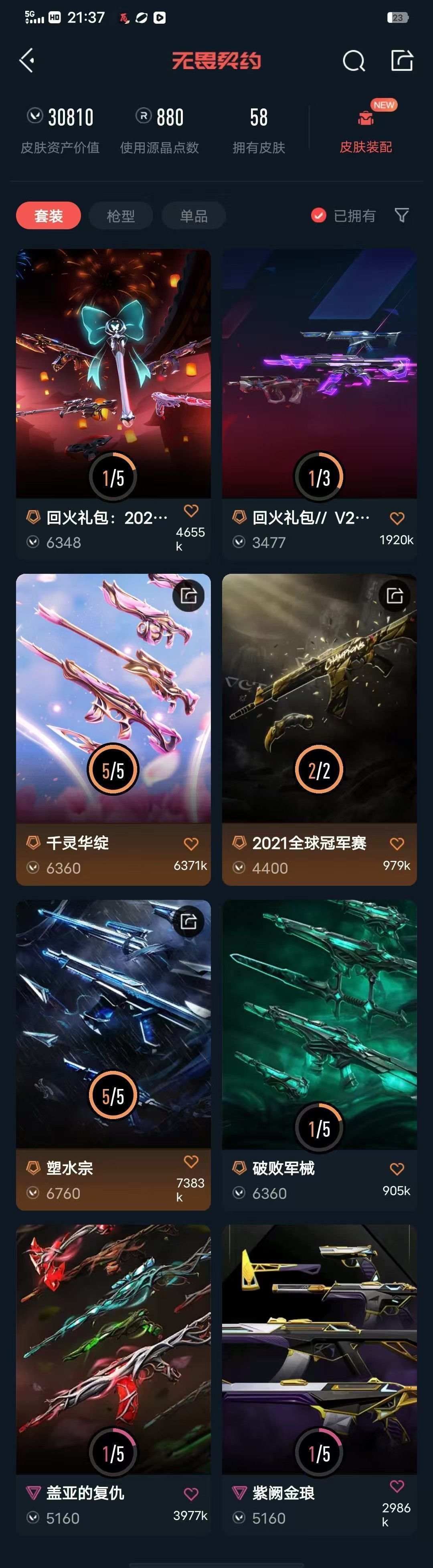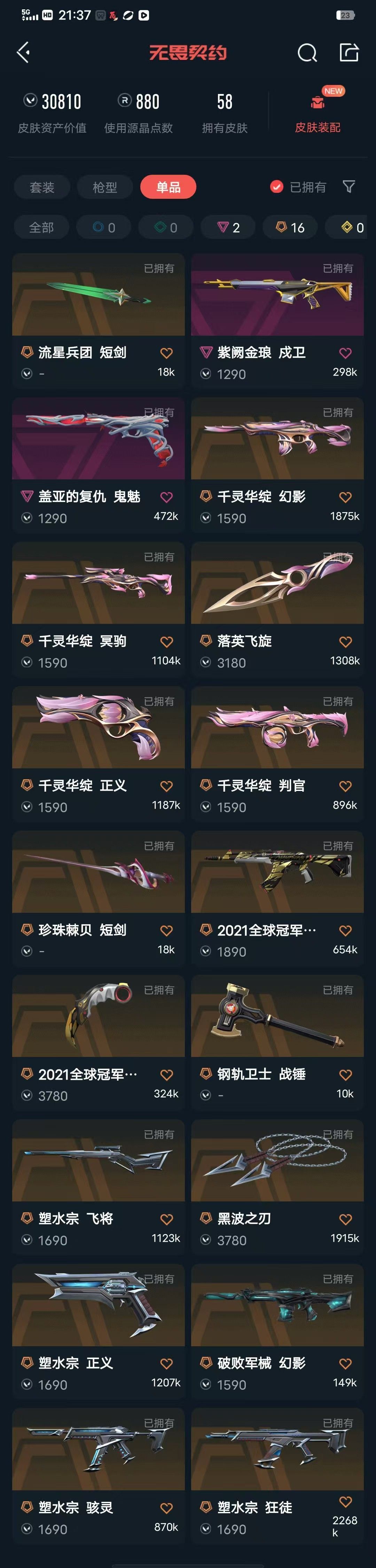 可排杀30+拉黑⚡21冠军套+千灵华绽套+塑水套⚡破败幻影⚡紫金戍卫⚡塑水AK⚡黑波之刃