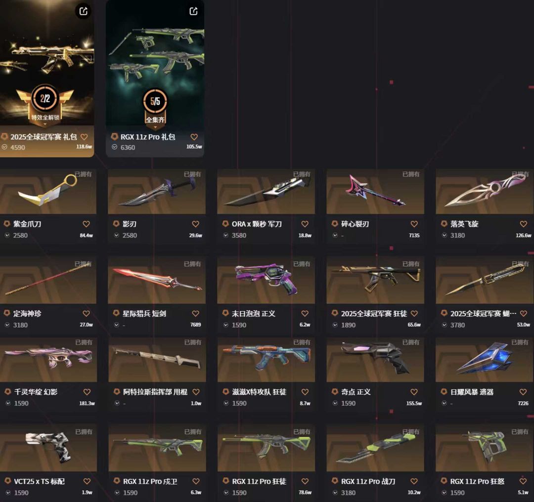 10万库可排位✨25冠军套rgx礼包✨颗秒刀紫金爪✨显卡盖亚紫金冰点掠影鲨鲨ak侦察般若魔蛇侦察m4
