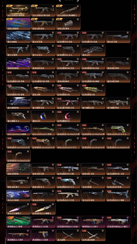 装备描述:悲悯之刃2025冠军双城之战塑水宗混沌序曲虚空遗器显卡3.0西部未来奇点2.0般若假面2.0苍龙之刃紫金爪刀侦察力量蝴蝶刀多弥尔的复仇狂徒末日泡泡幻影2022冠军幻影噬影者狂徒创纪元狂徒洪荒怒焰狂徒归零者狂徒奇点幻影超时空卫队撩犬超时空卫队狂徒艾莉沃的梦之翼狂徒离子武器2.0狂徒异鳞魔蛇幻影紫阙金琅狂徒盖亚的复仇狂徒侦察力量幻影海洋之星狂徒日冕雄师狂徒掠影狂徒堕天遗武冥驹起源冥驹奇点骇灵lev标配末日泡泡正义混沌序曲2.0正义破败军械鬼魅奇点正义超时空卫队鬼魅掠影3.0追觅天界神兵鬼魅离子武器正义奇幻朋克2.0正义