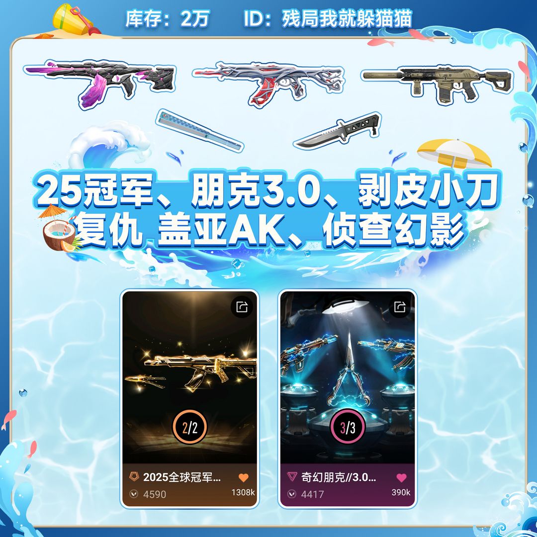 禁排位⭐3万库存⭐25年冠军套⭐奇幻朋克套⭐多米尔的复仇ak⭐扇子⭐剥皮小刀⭐盖亚ak⭐