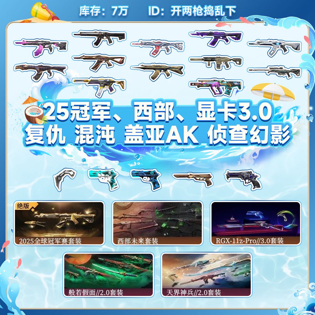 7万库存❤️上赛季神.话3❤️25冠军套❤️西部套装❤️般若套装❤️显卡套装❤️天界套装❤️混沌ak