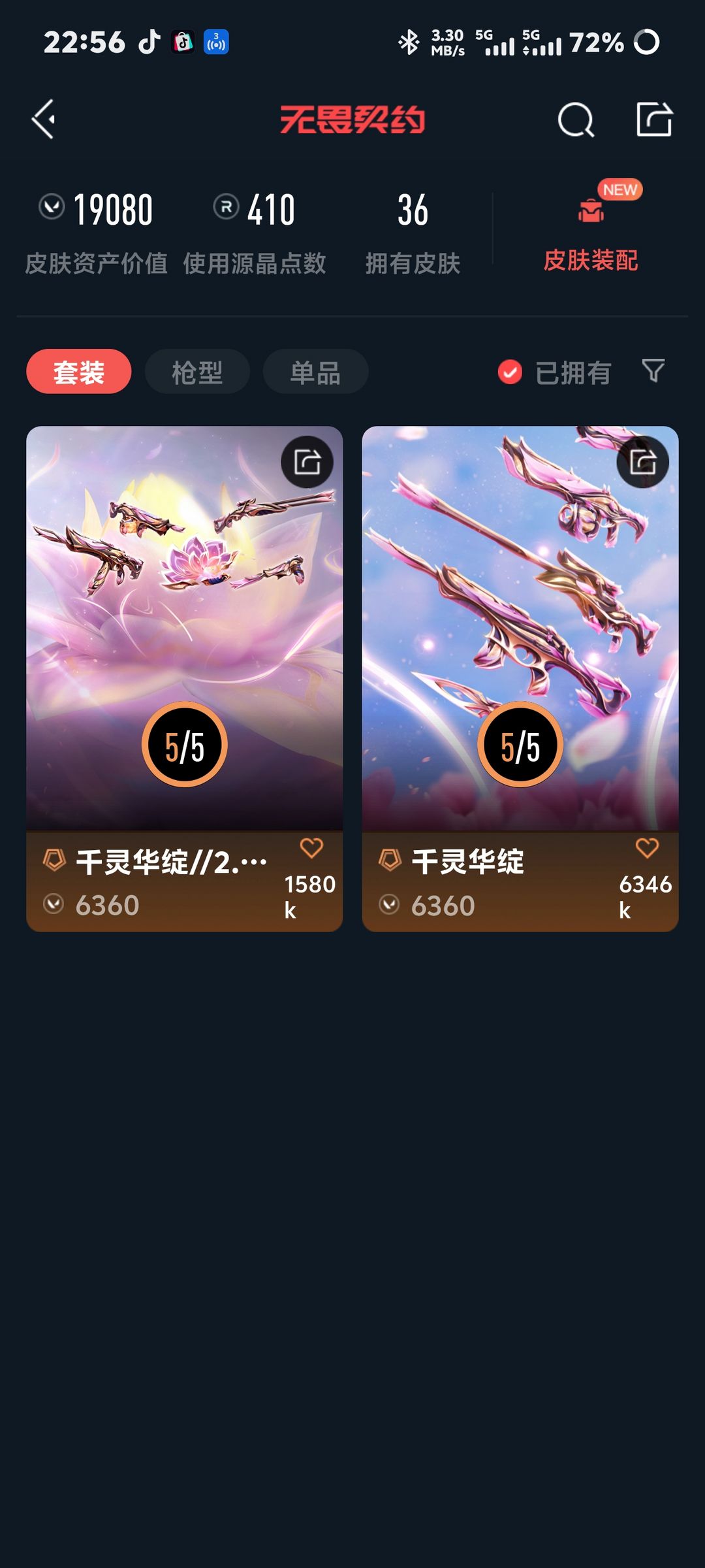 可排位!千灵华绽双套全齐,36 款皮肤覆盖全枪型,源晶 410,直接上号开黑!文明游戏,