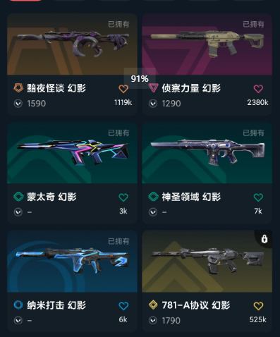 可排位❤️奇点影勾刀❤️显卡混沌奇点炽焰盖亚雄狮狂徒❤️黯夜侦察幻影❤️西部正义超时空鬼魅掠影大狙