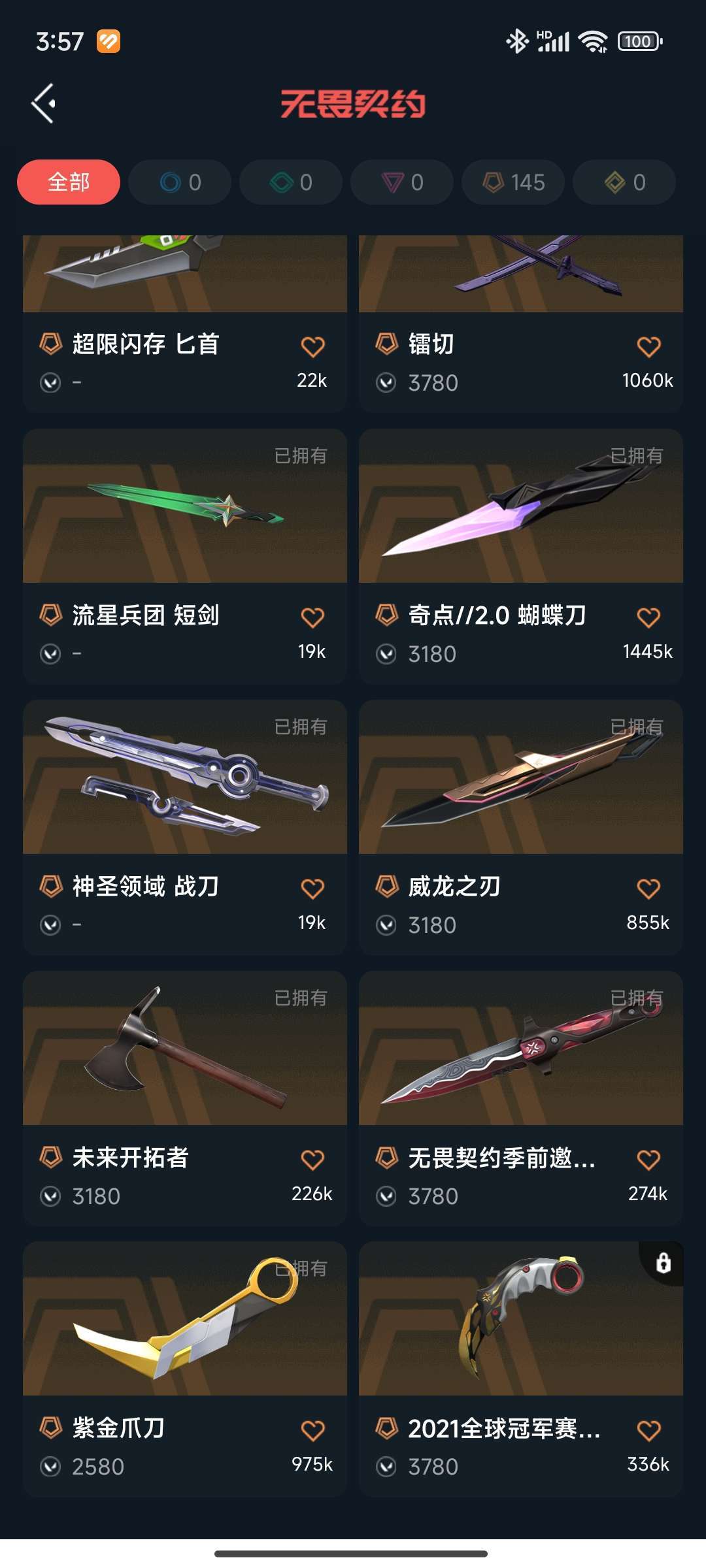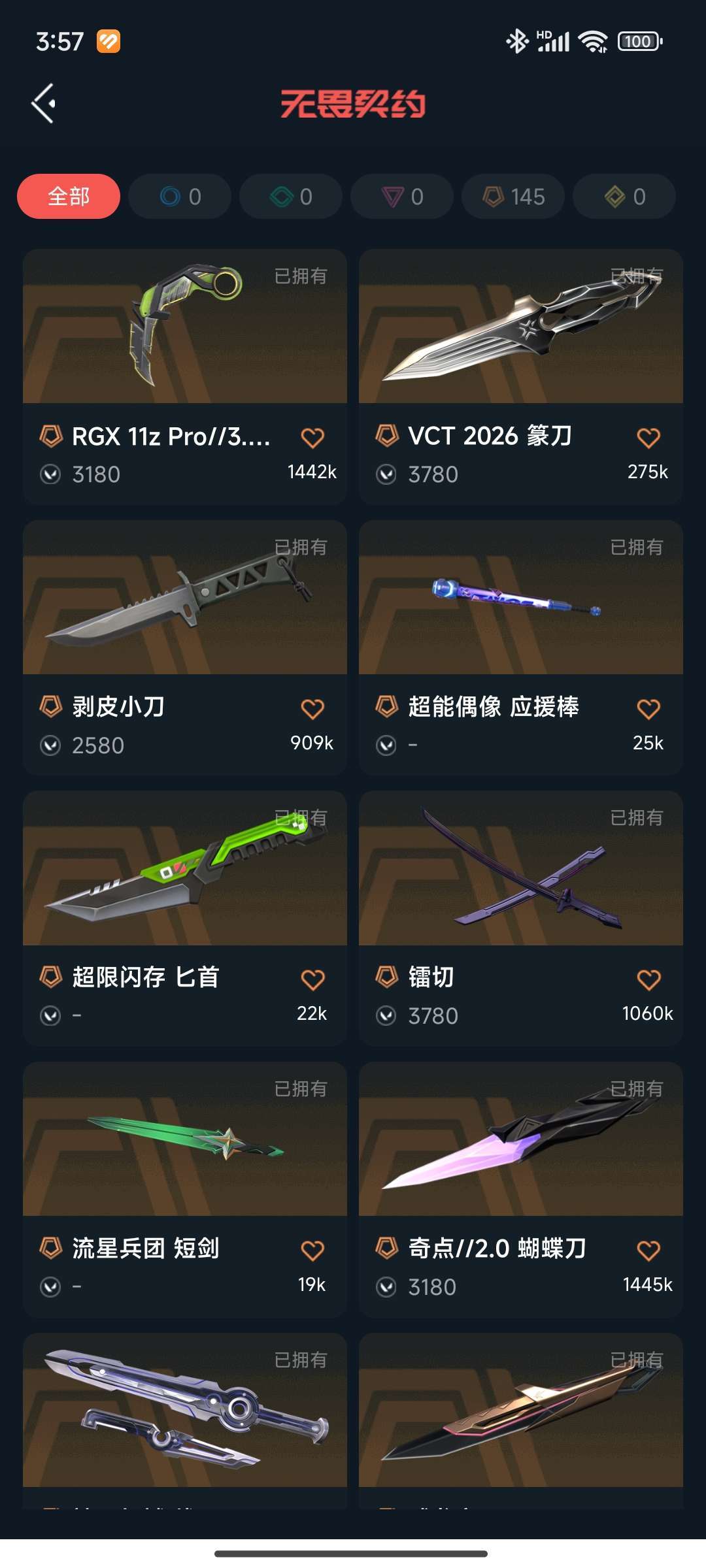 镭切/显卡爪刀/奇点蝴蝶/威龙之刃/剥皮小刀/塑水宗/双城之战狂徒