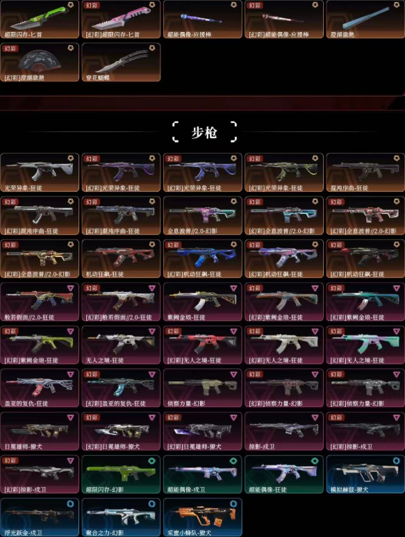 可排位大库存✨穿花鱼扇✨混沌光荣机动恶鬼紫金无人盖亚AK✨全息侦察M4✨离子大狙✨天界鬼魅✨莲花正义