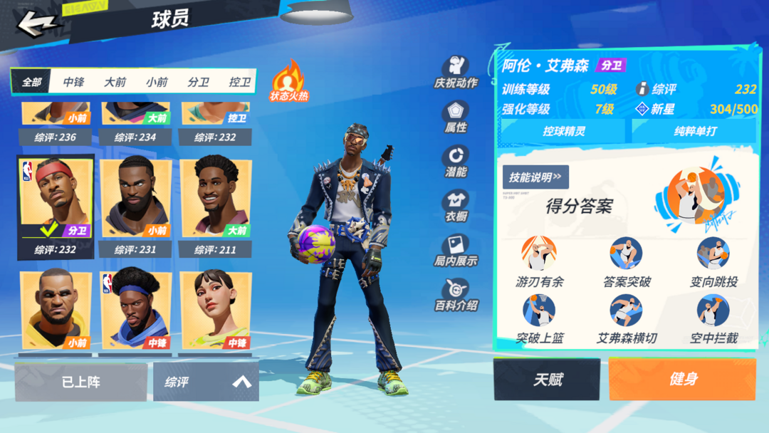 角色名:7小卡7罗德曼7威少7艾弗森7布朗7JJJ 满天赋 克詹