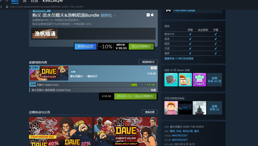游戏区服:潜水员戴夫-Steam-Steam