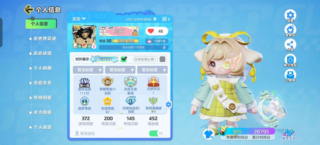 账号配置齐全,角色装扮精致,皮肤道具丰富多样,整体体验感拉满!