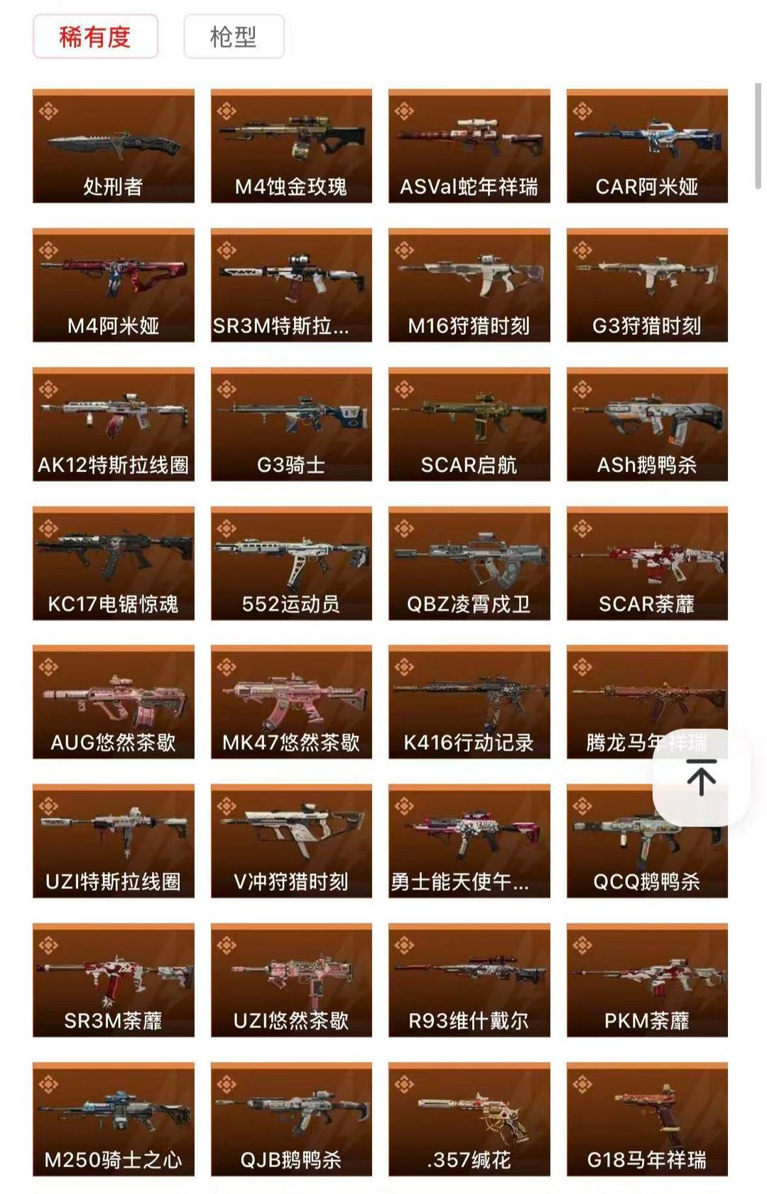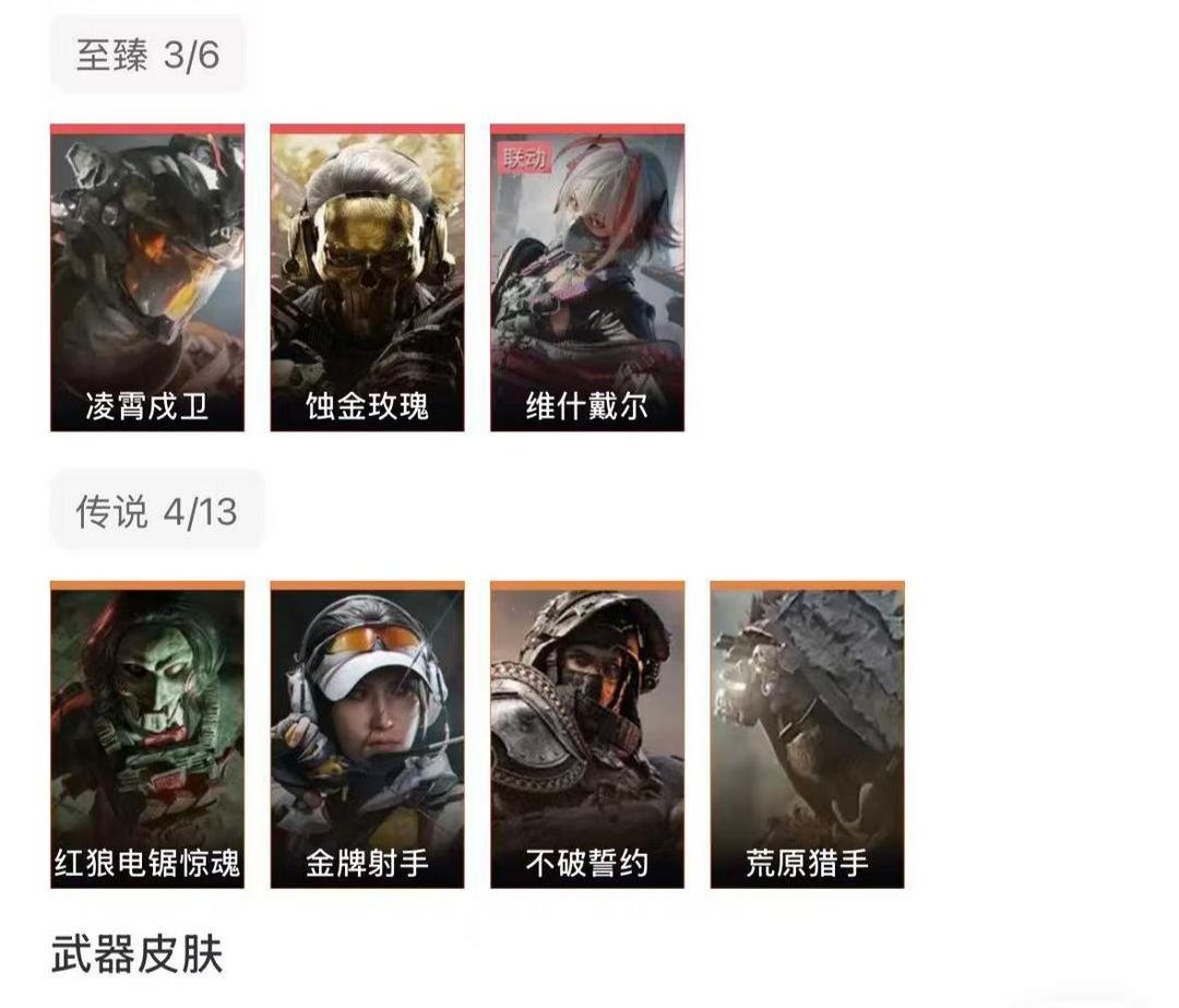 皮肤号 近战2 枪皮254 凌霄戍卫/维什戴尔/蚀金玫瑰/荒原猎手/金牌射手/电锯惊魂/处刑者