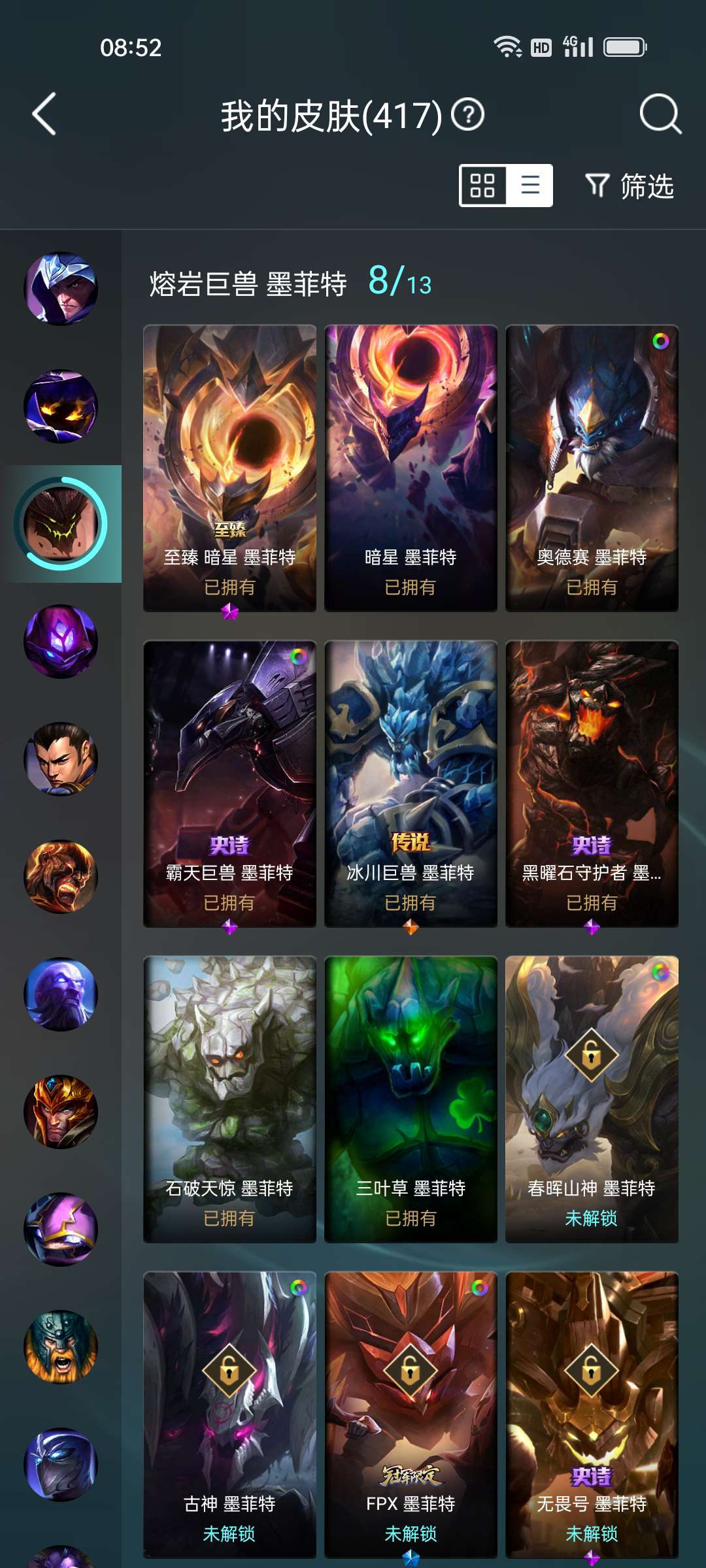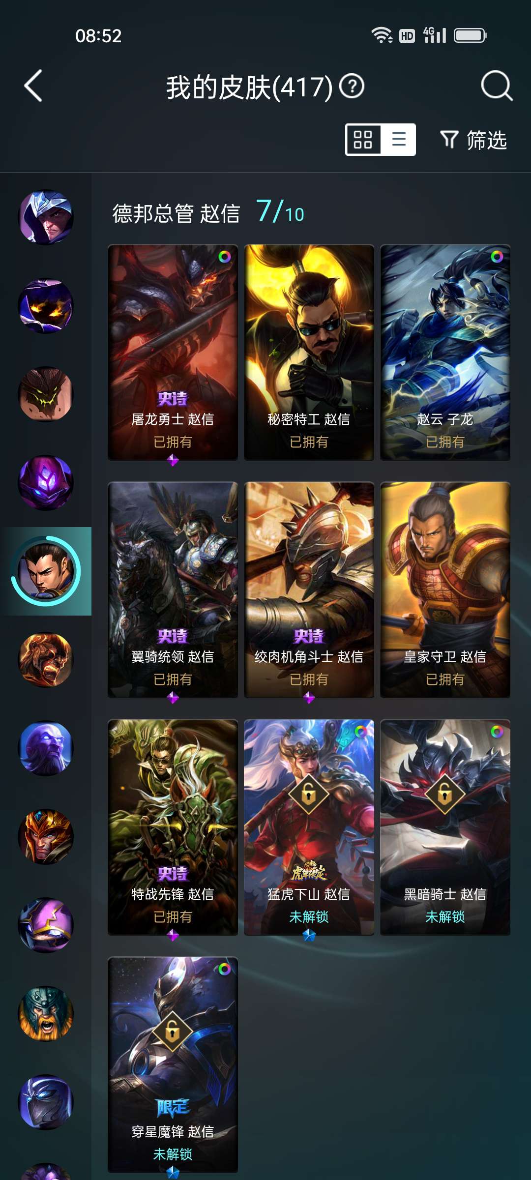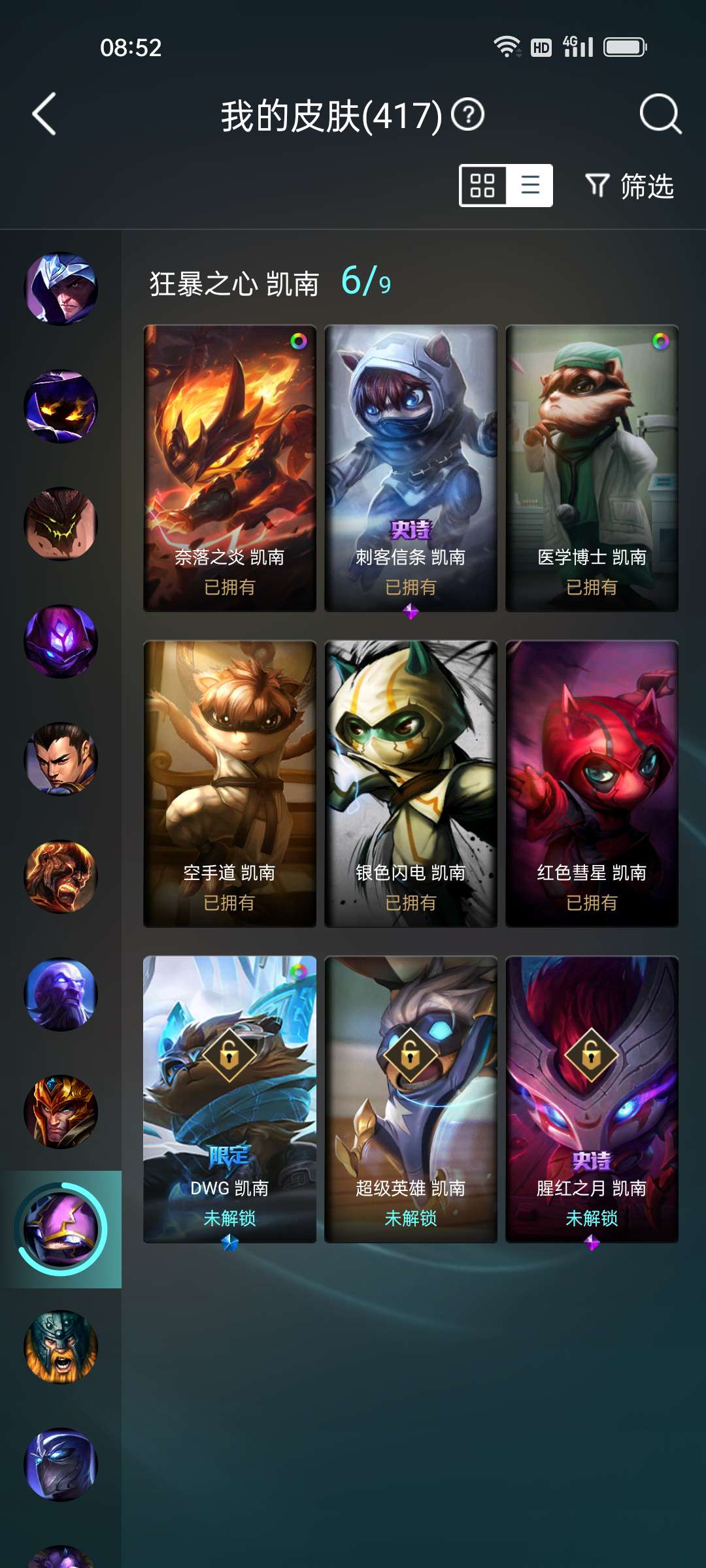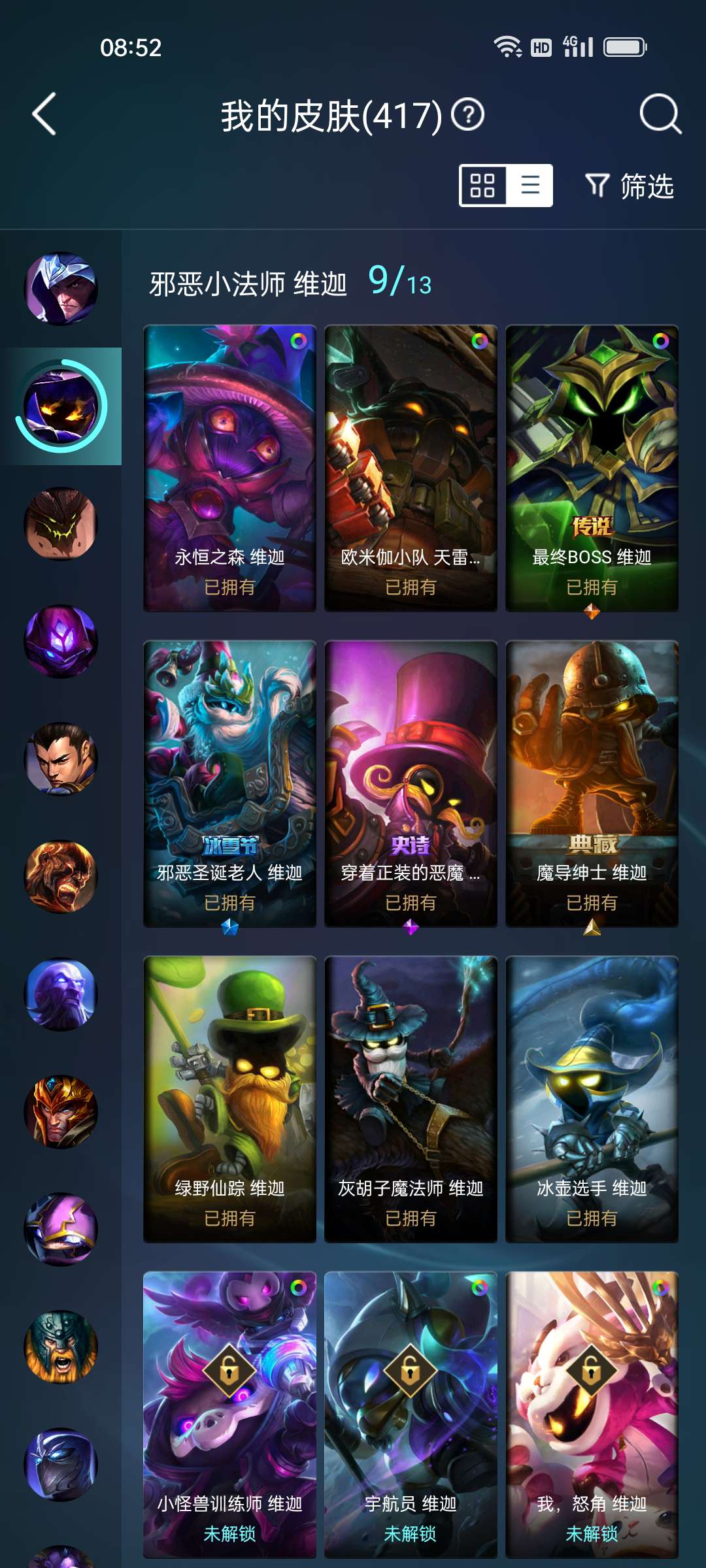 装备描述:全英雄449皮肤100多各种稀有限定中单上单皮肤多 至臻男刀卡莎石头人海克斯蚂蚱情人节乌鸦万圣节梦魇人马至高天新英雄和维古斯野兽猎人有很多最新中单上单很多英雄都有7个皮肤以上具体看号