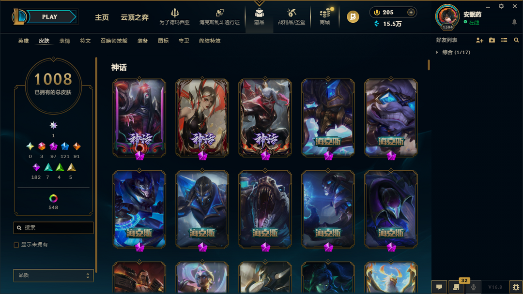 ██ 全英雄 2200皮丨只可匹配禁止其他模式丨100神话丨殿堂卡莎丨创星御星丨玉剑男刀丨甜心格温