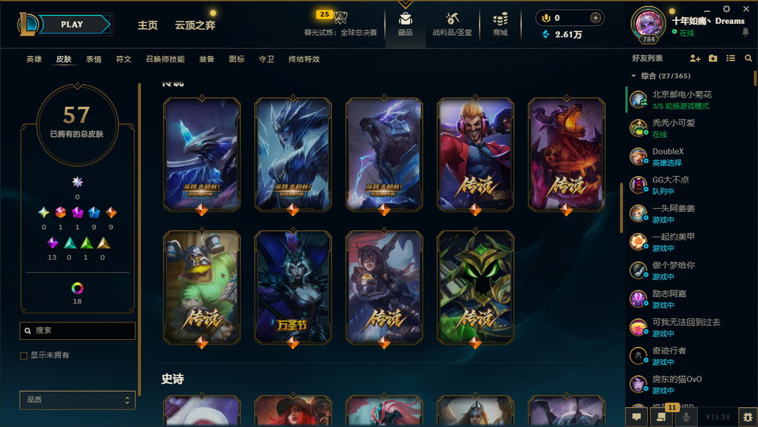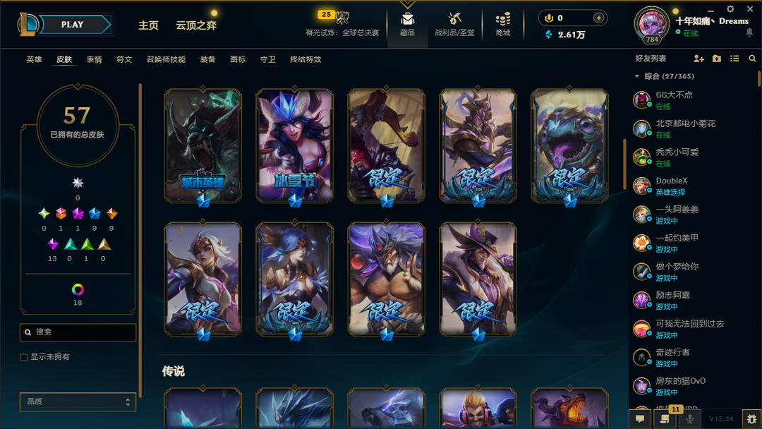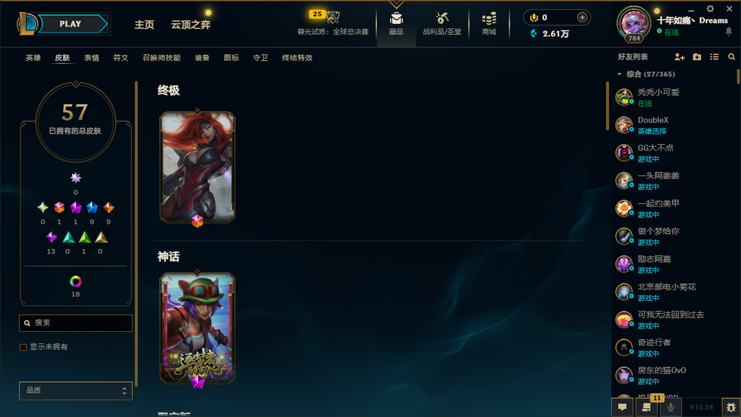 精品皮肤57✅武装战姬厄运小姐杜甫王朝图奇胜利剑圣易胜利女神菲奥娜黯晶凤凰艾维尼亚金牌主播德莱文