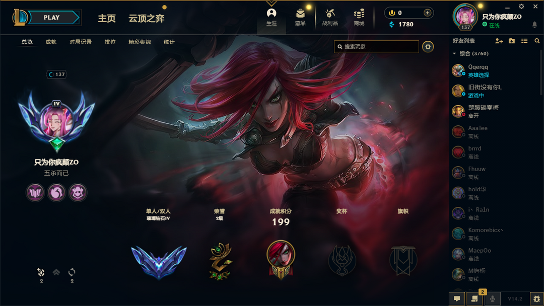 段位:161级 当前赛季无