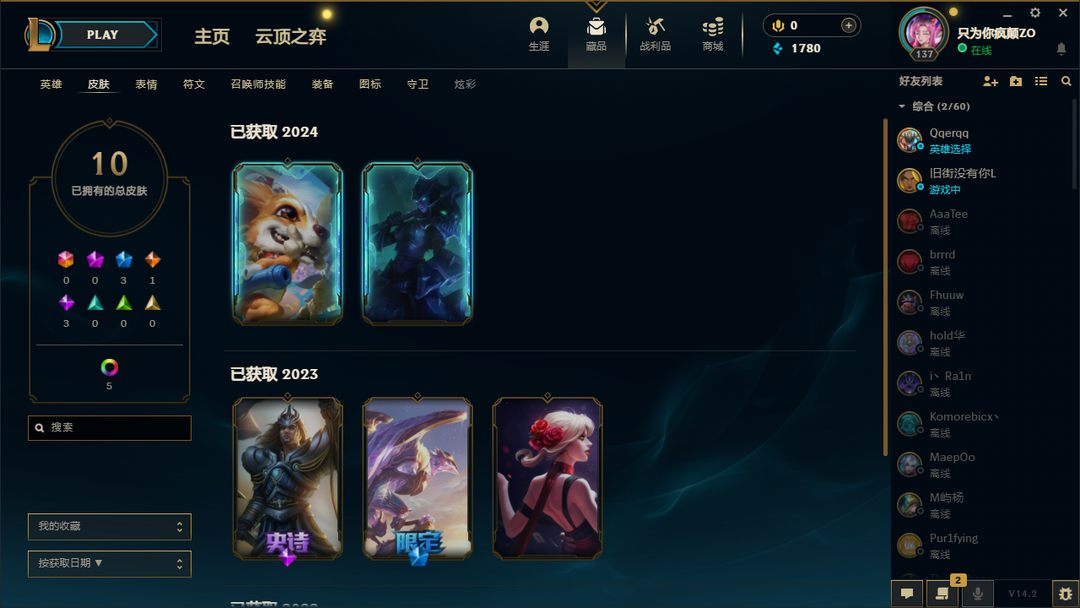 艾欧尼亚上赛季翡翠一可排位英雄多皮肤没多少前线指挥官卡特琳娜