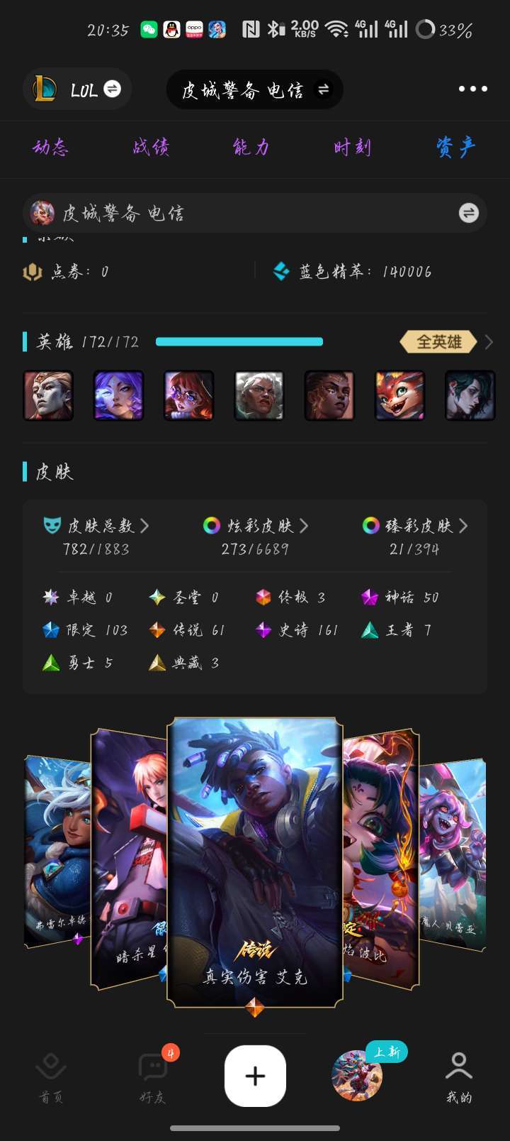 装备描述:全英雄八百多皮肤炫彩 皮城警备 可排位 灵活