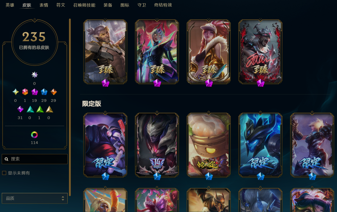 联盟四区 全英雄 可排位 200皮 最新神话已秒常年黄金白银 妹子号