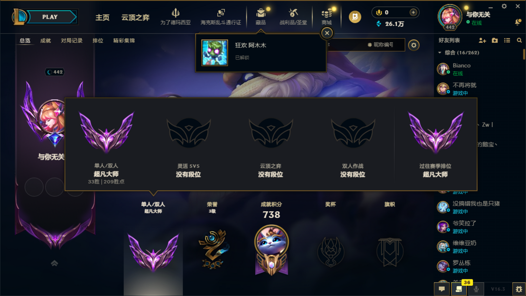 段位:442级 超凡大师