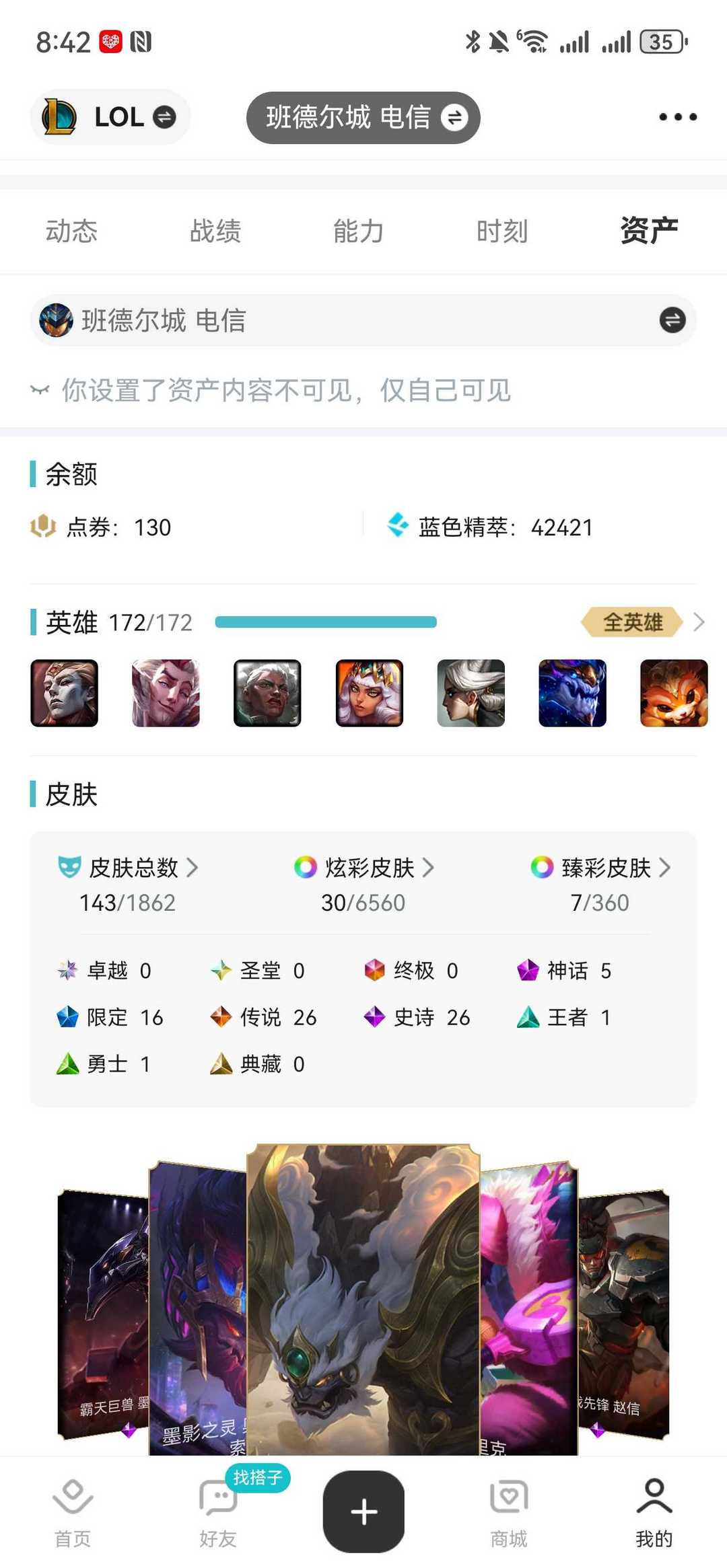 装备描述:皮肤不多,但是段位单双和灵活都是黑铁4,喜欢本账号请点 ☆收藏☆ 方便下次租用,谢谢光临惠顾!