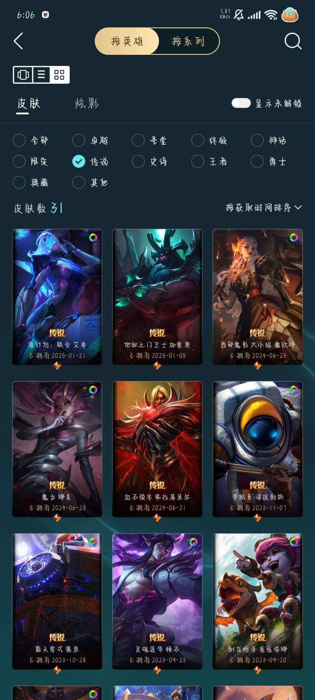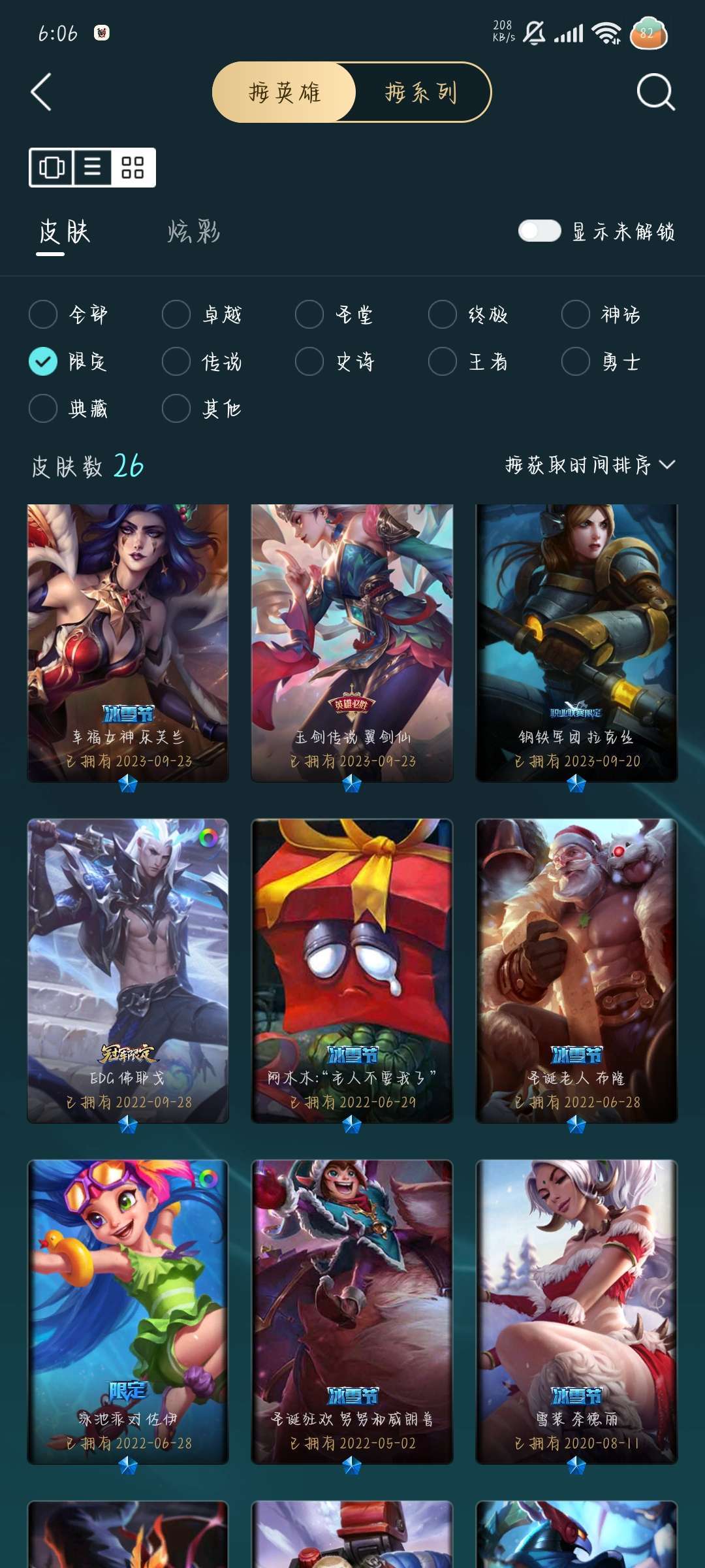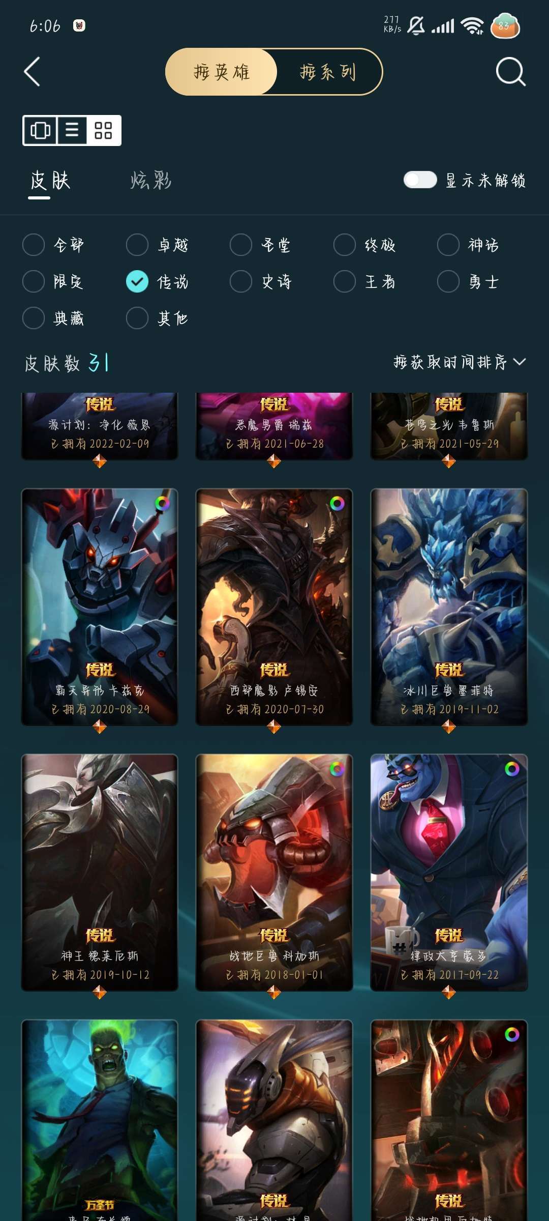 装备描述:246皮肤,1终极,7神话,31限定31传说.