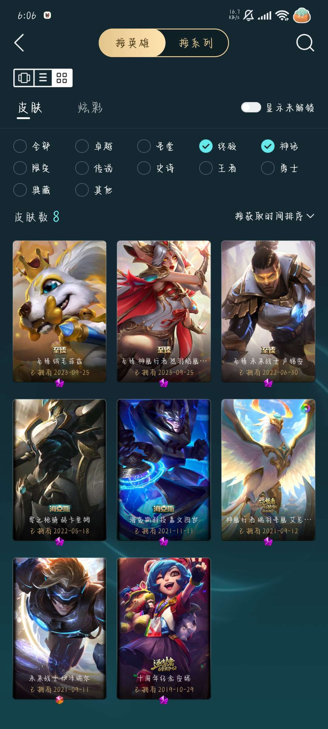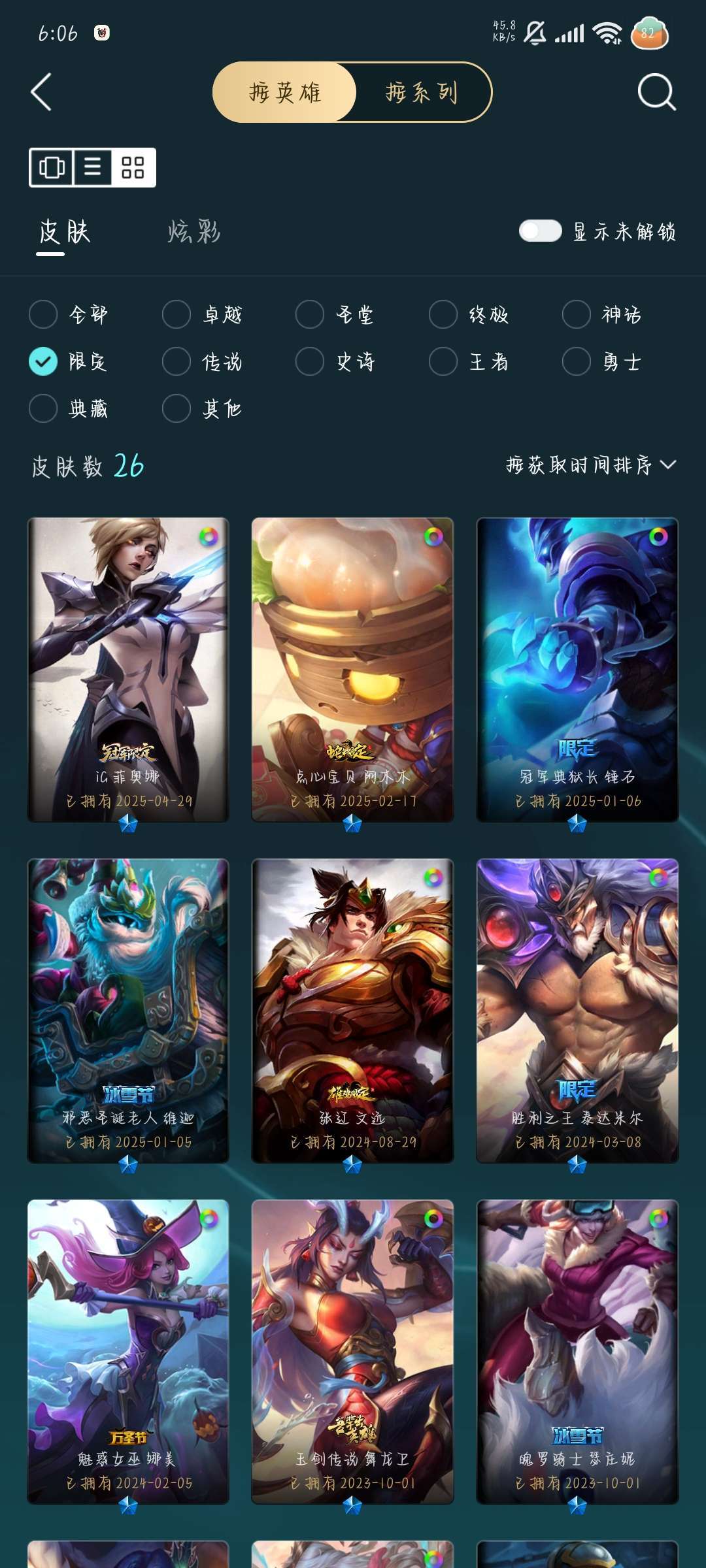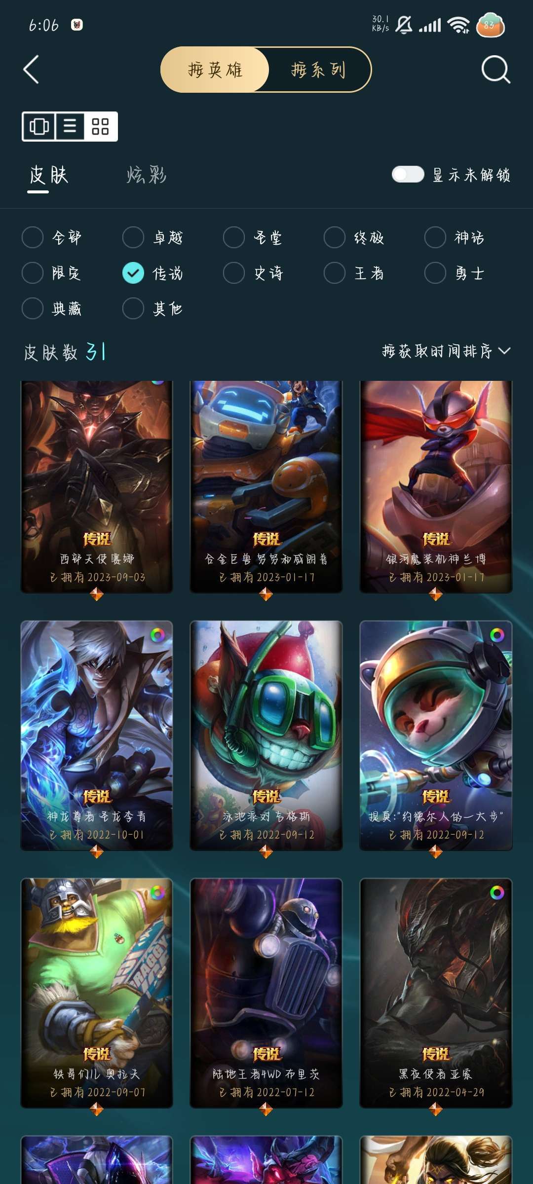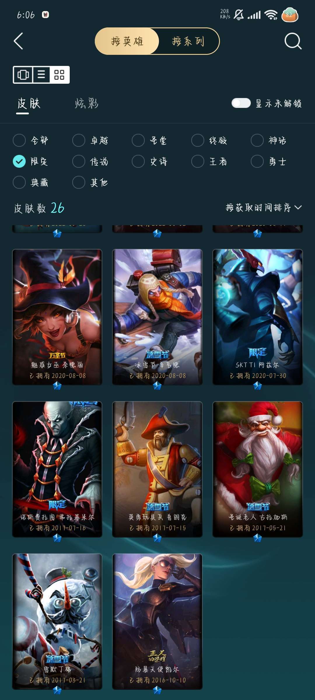 装备描述:246皮肤,1终极,7神话,31限定31传说.