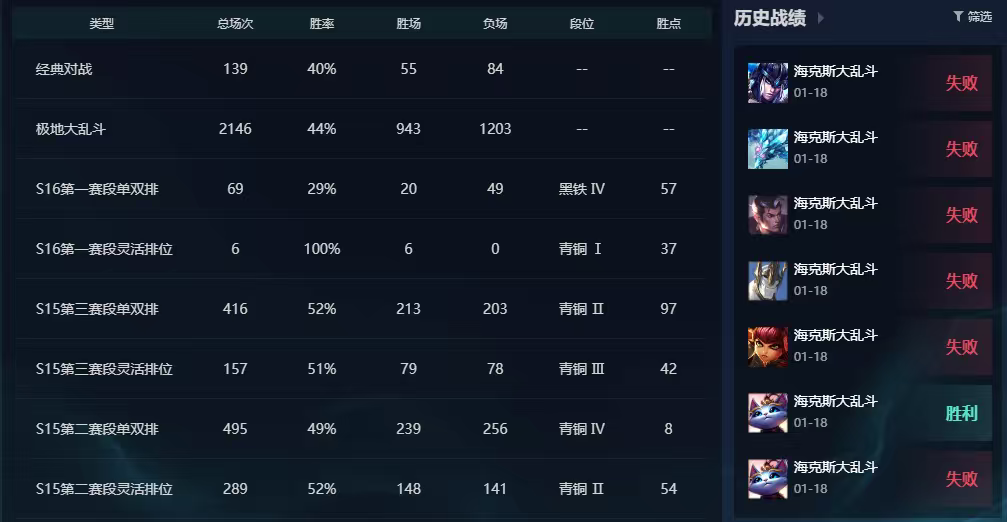 艾欧尼亚❤️100皮可排位❤️单双青铜❤️灵活青铜❤️海克斯乱斗负胜率❤️极品虐菜号