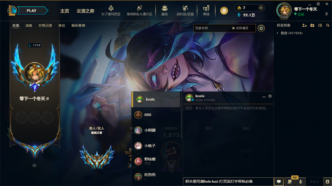 段位:1729级 傲世宗师级 傲世宗师