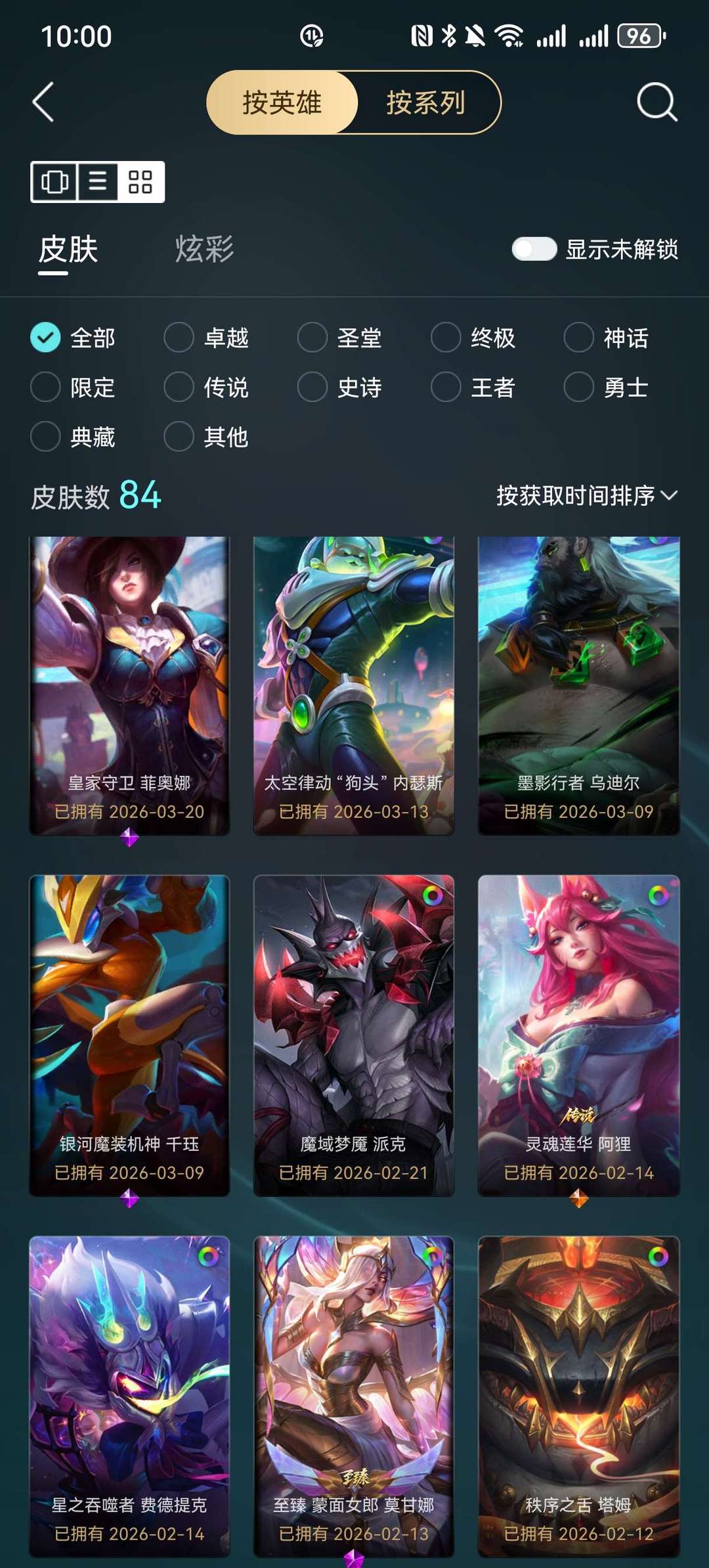 至臻未来锤石+至臻星守艾克,还有一些不错的皮肤,挺有说法一号。持续更新皮肤中~