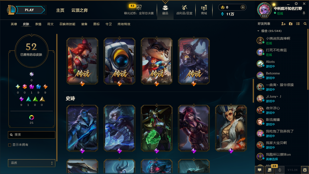 精品皮肤52✅十五周年纪念日希维尔暗裔英雄盖伦胜利剑圣易胜利之运崔斯特丧尸布兰德女校长菲奥娜雷喵喵尔