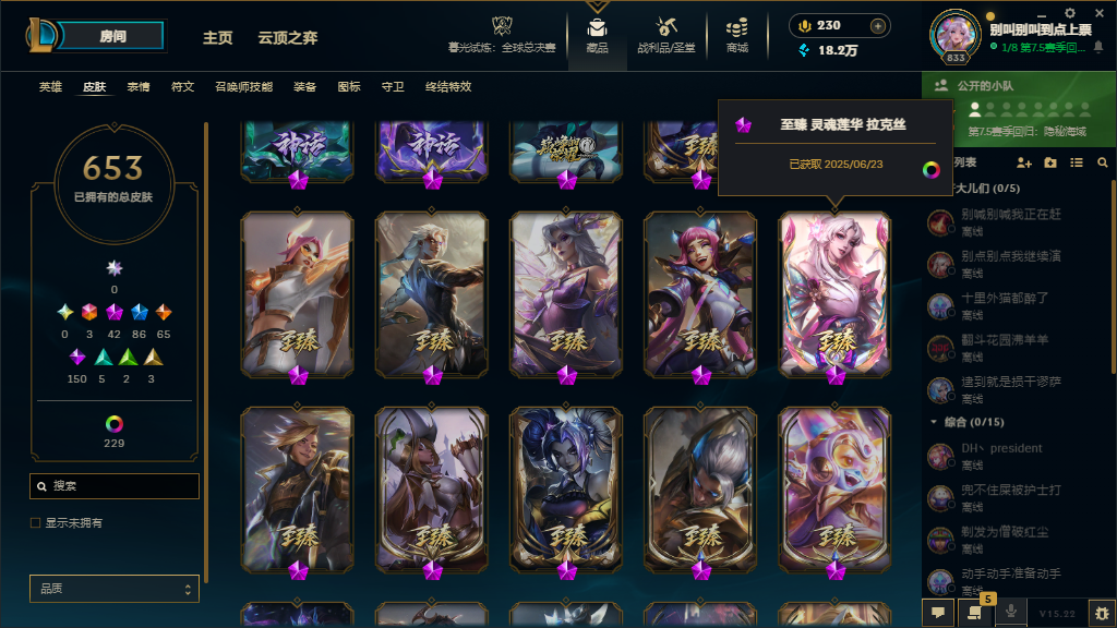 【联盟五区】历史最高宗师653皮肤3终极42神话云顶灵魂莲华小小奥丽安娜小小永恩气象主播水云天池棋盘