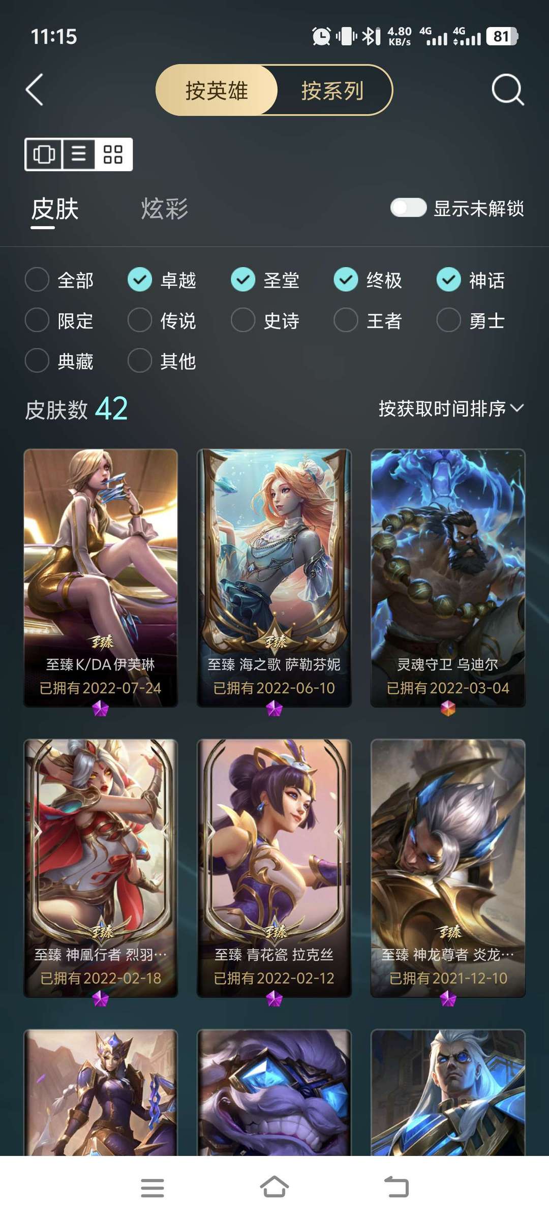 一区下三段账号,全英雄,300+皮肤,至臻数量40+基本上所有英雄都有皮肤