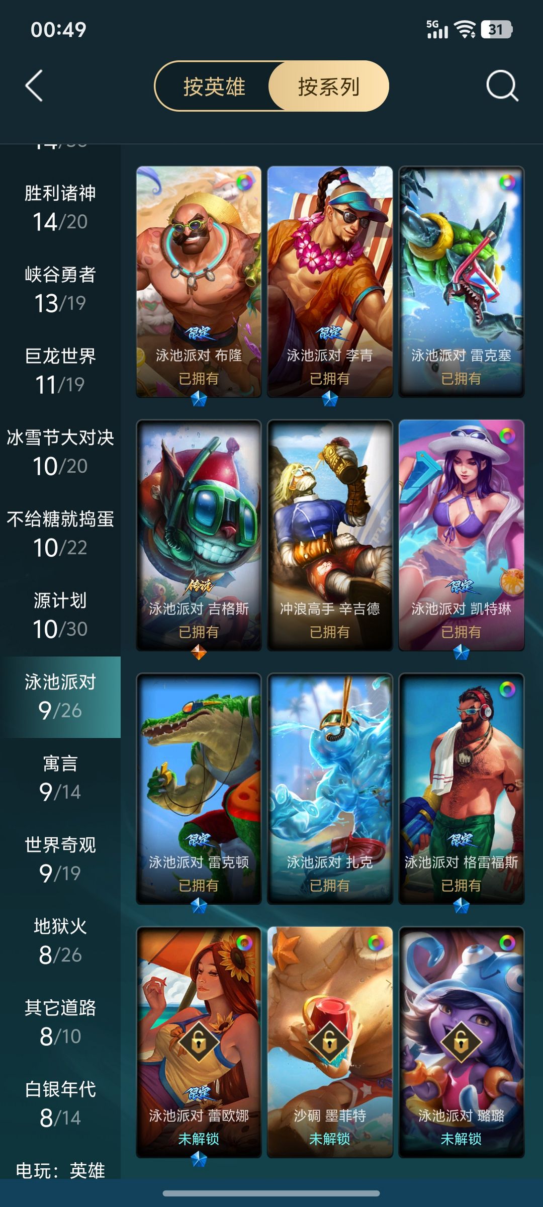 装备描述:IG还有SKT战队皮肤泳装传说零之枪骑恐惧新星神龙尊者泳池派对