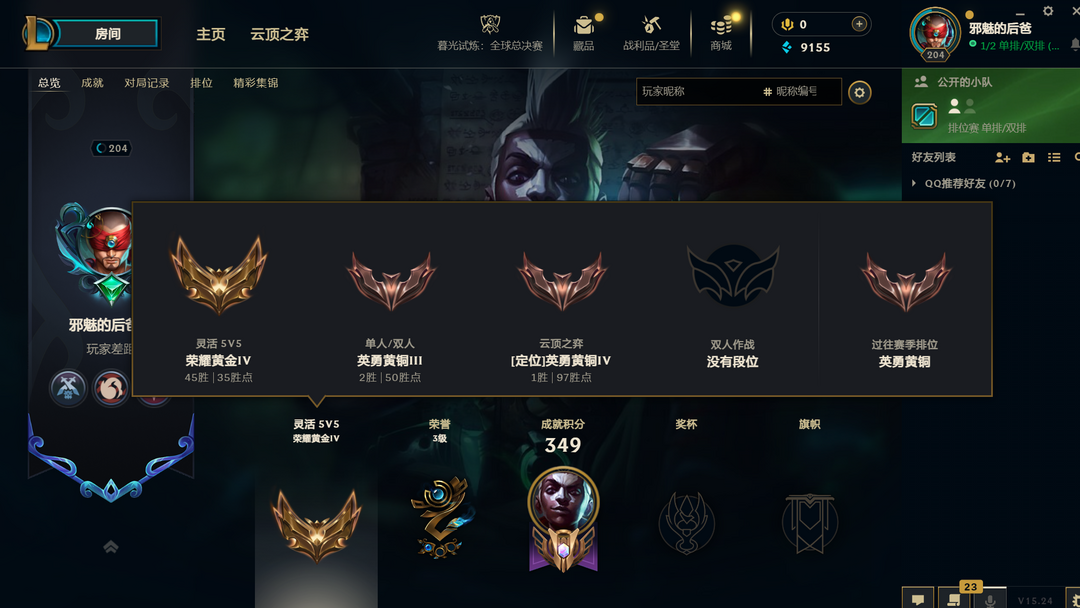 段位:205级 当前赛季无
