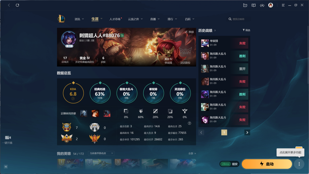 联盟一区·祖安·单双黄金4·灵活黑铁4·匹配-乱斗-斗魂低隐藏分(陪玩娱乐精品号)