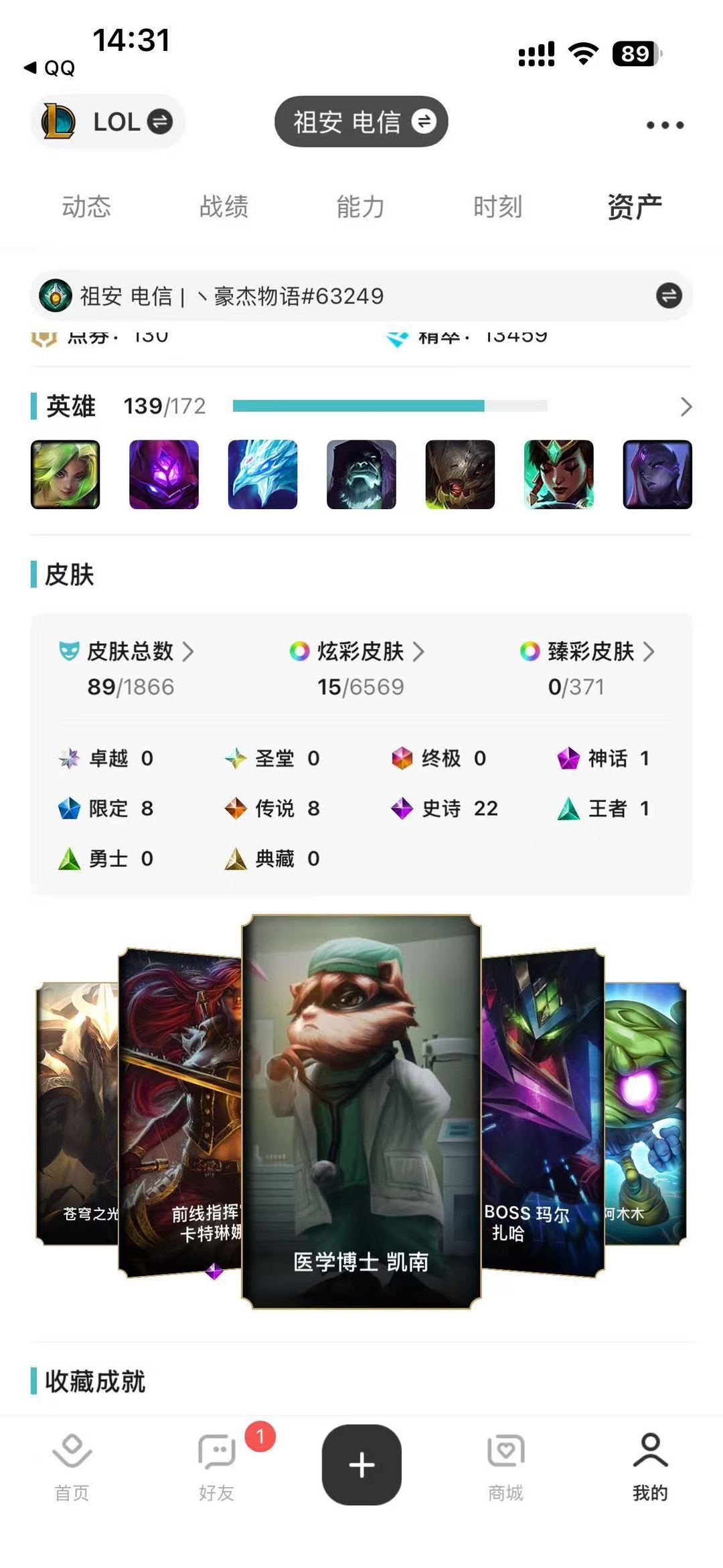皮肤:89