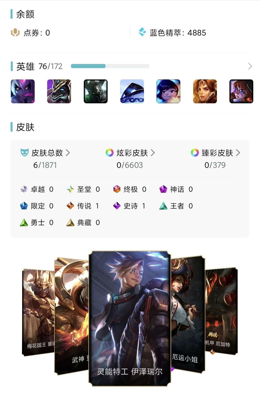 白银黄金号,快乐游戏嘎嘎上分,有限定皮肤,灵能EZ
