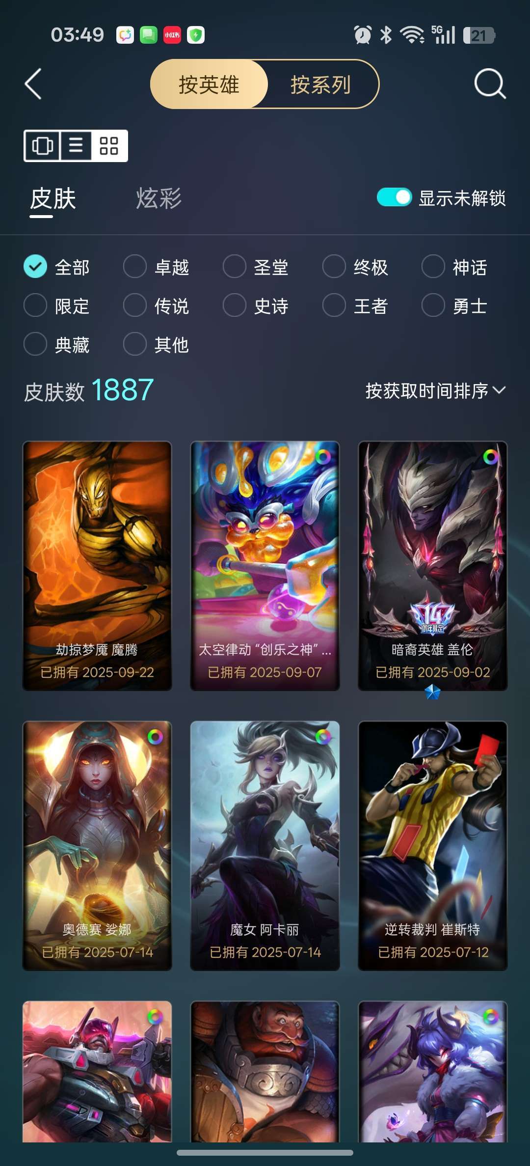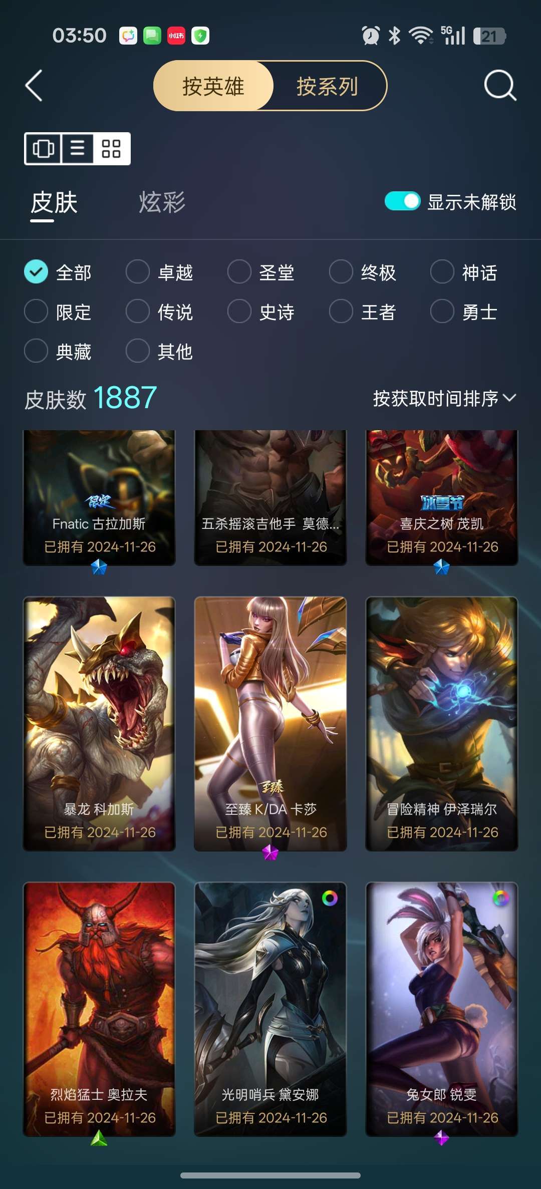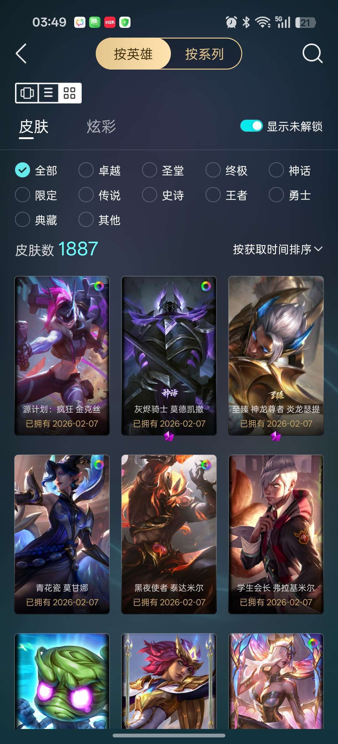 龙瞎龙刀各种年限+殿堂VN+剑圣斩星魔剑+各种至臻等500质量皮肤
