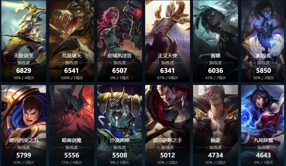 暗夜猎手;战争女神;赏金猎人;众星之子;寒冰射手;皮城女警;光辉女郎;暴走萝莉;黑暗之女;德邦总管;